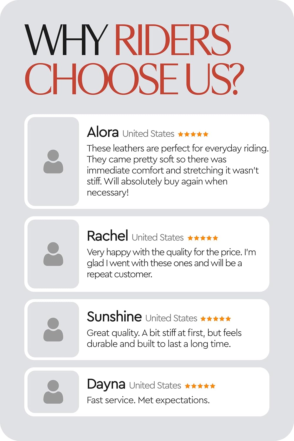 - Easy To Put On: Simple, belt-like functionality so you can get these leathers on and off in a hurry!