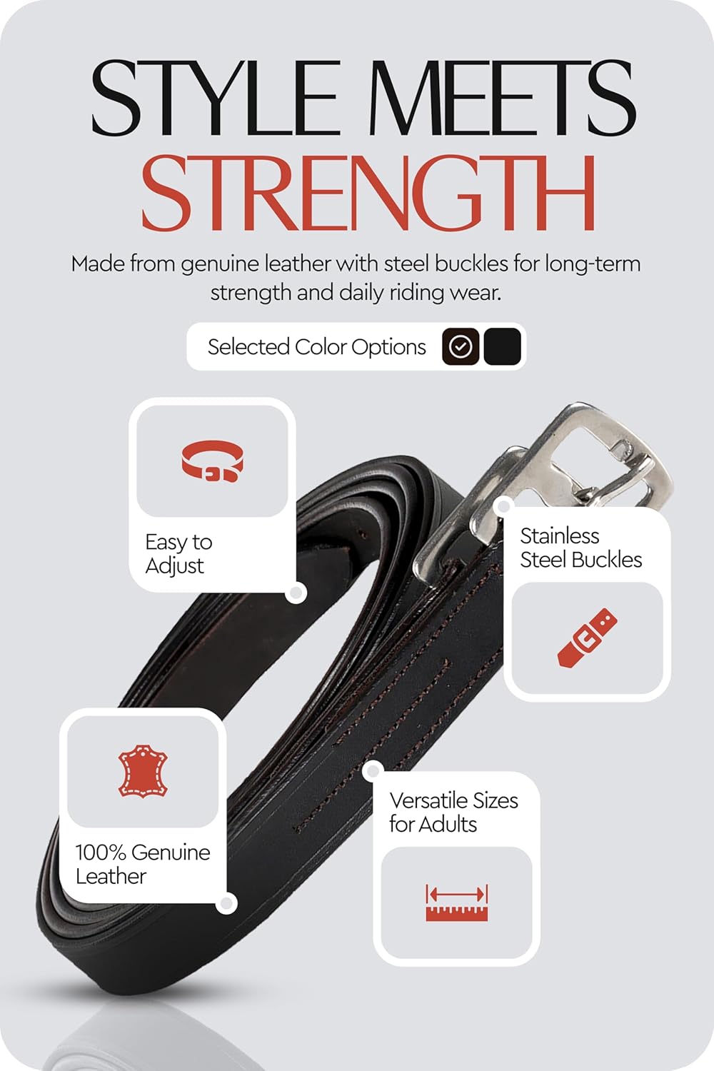 HORZE Genuine Leather English Riding Stirrup Leathers Pair | Adult Sizes