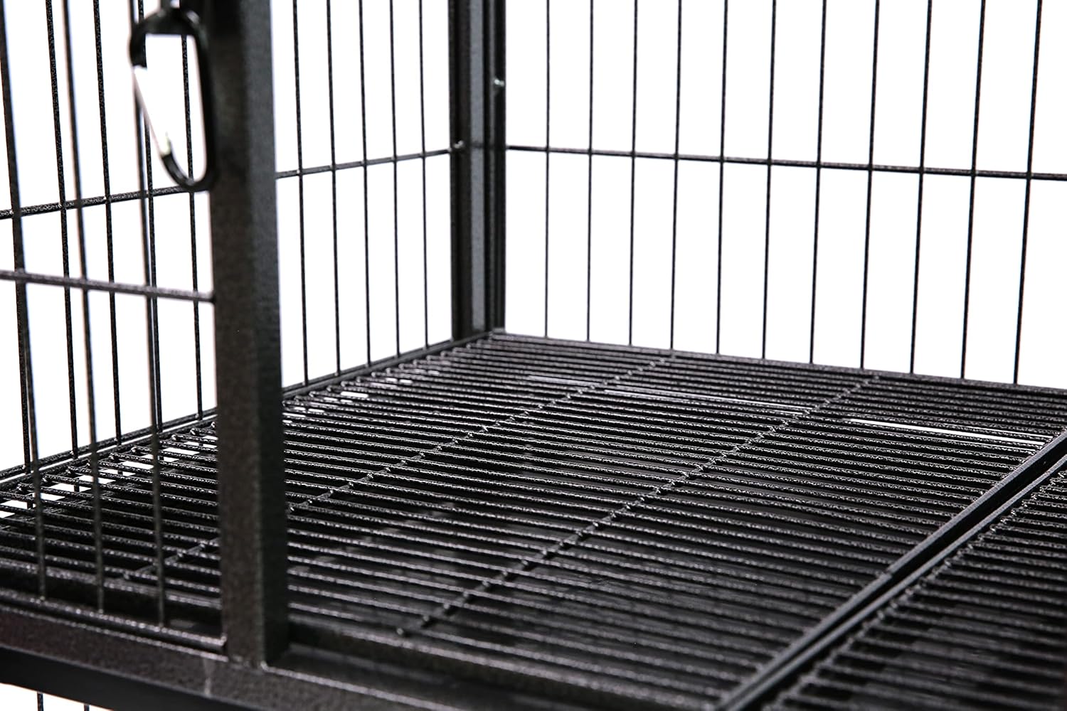 - Easy Cleaning and Maintenance: Featuring a paw-friendly metal floor grid and a pull-out leak-proof tray, this crates for dogs indoor makes waste and debris management effortless. The grid provides strong support and is easy to clean, while the tray ensures a hygienic environment. The tray guard prevents accidental tipping for added convenience