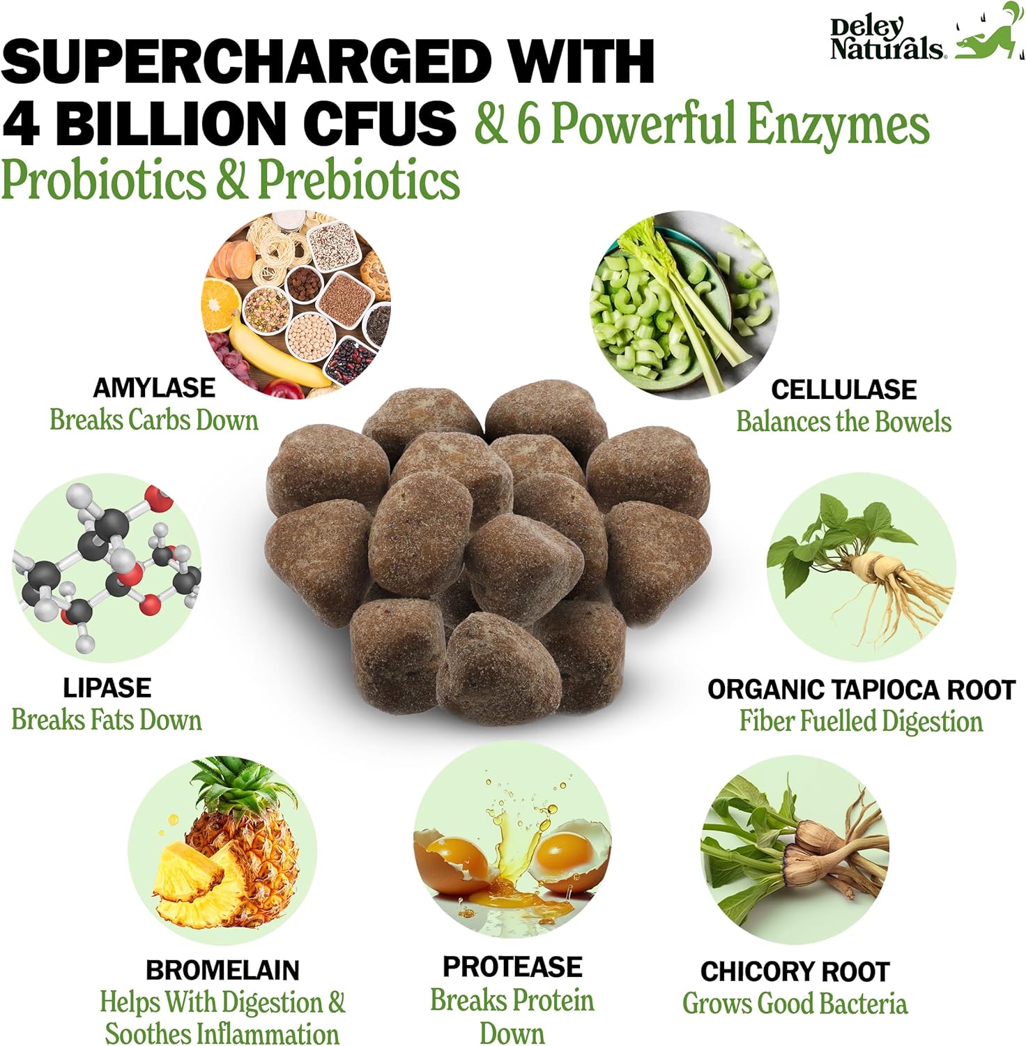 Deley Naturals Dog Probiotic Chews - Dogs Probiotic for Digestive Health with 4 Billion CFUs & Digestive Enzymes - Anti Diarrhea for Dogs - Dog Gut Health Probiotics for Allergies - Made in The USA