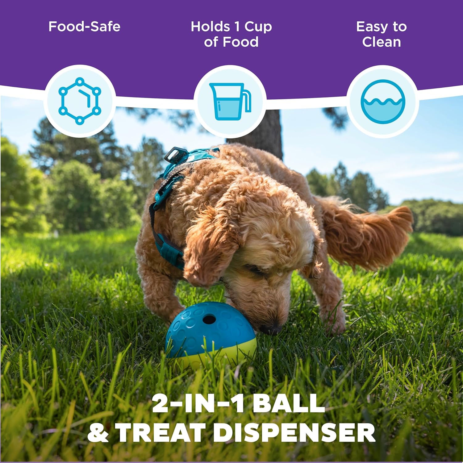 - Dogs nudge and roll the ball to release hidden treats – multiple ways to play and make the game easier or harder for your pet; see our Tips and Tricks for details