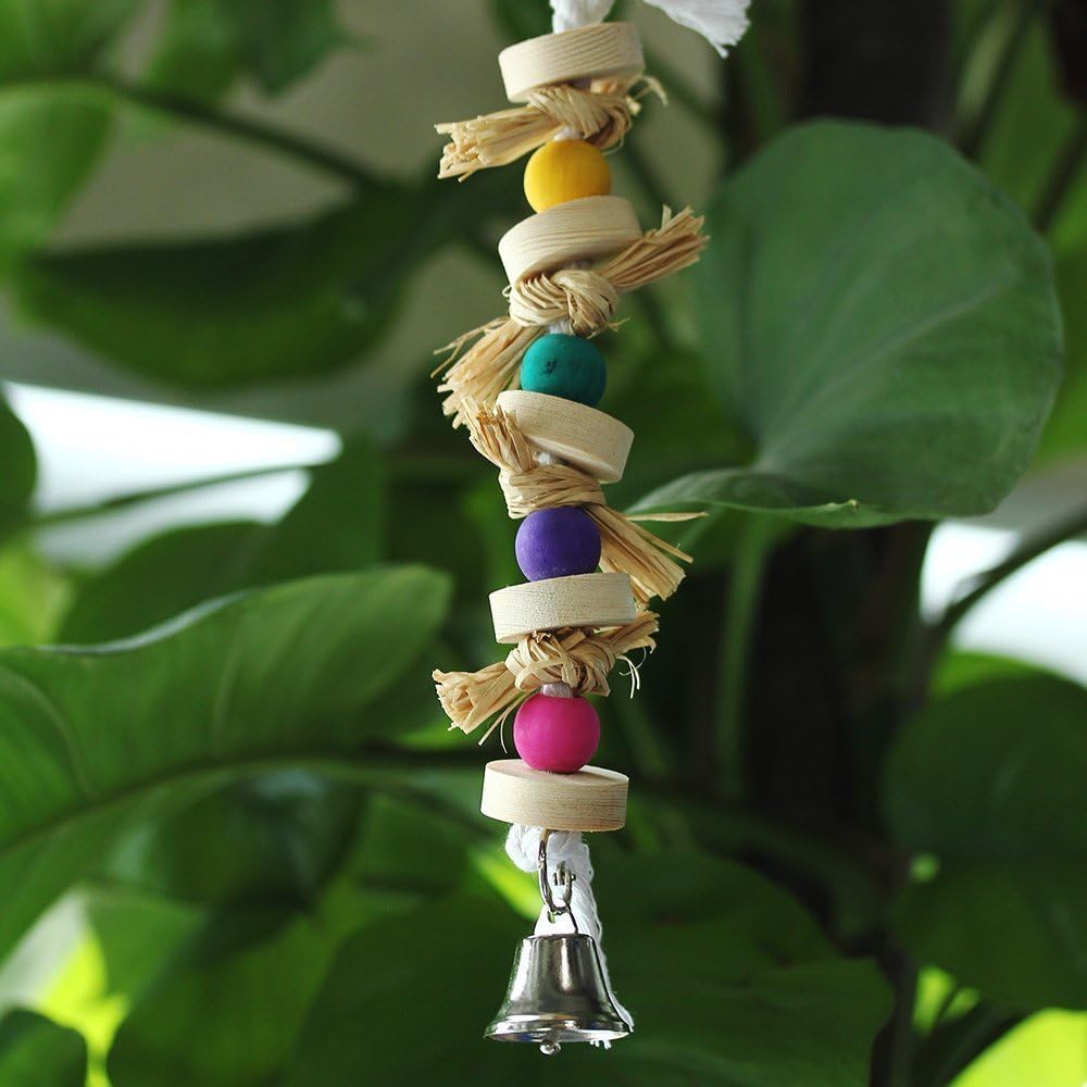 Hypeety Parrot Pet Bird Chew Bird Toys Parakeet Toys Wooden Straw with Bell Cage Swing Toys Bird Cage Hanging Accessory