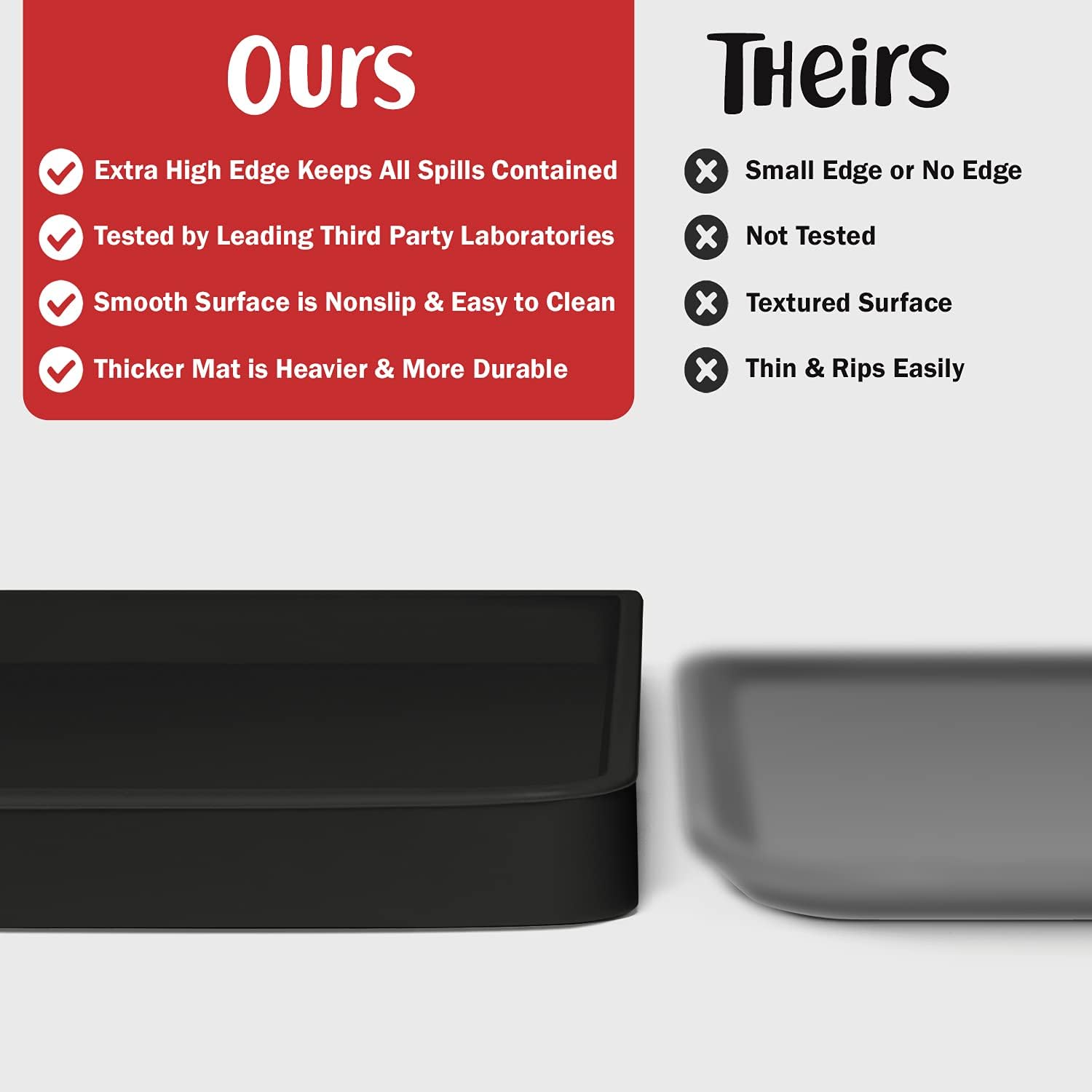 - Less Mess & Less Stress: Super high edge (0.6”) of DogBuddy Dog Food Mat keeps the spilled food and water on the mat and away from your beautiful floor. Silicone is naturally 100% waterproof, so what happens on the mat stays on the mat.