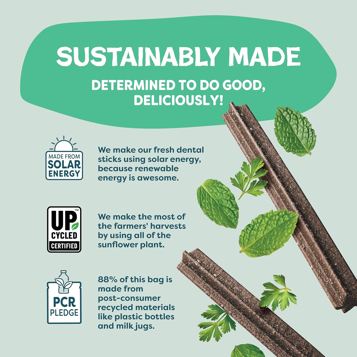 - Upcycled With Care: We work with farmers to rescue their imperfect fruits and vegetables that have all the same healthy nutrients. This means every bag of our treats decreases food waste while saving valuable resources.
