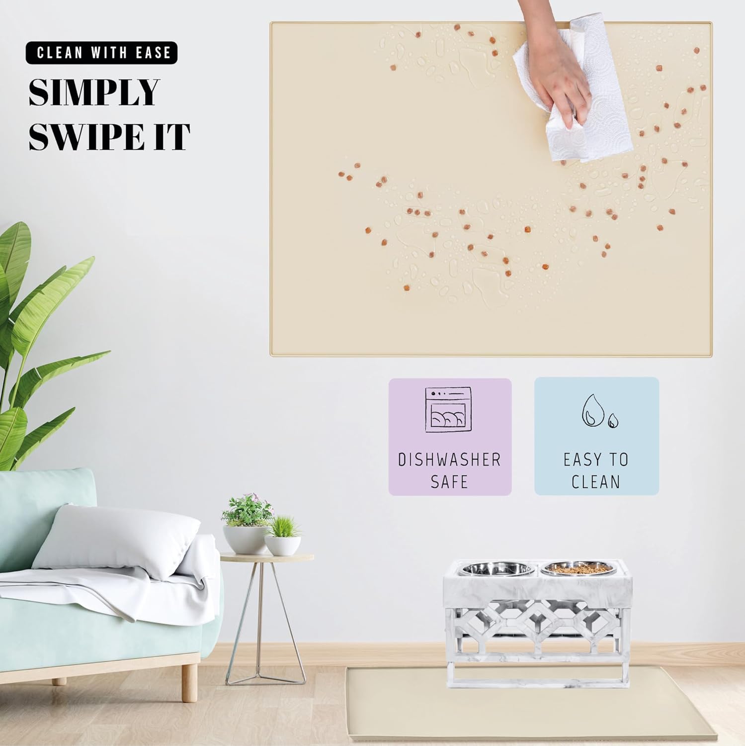 - Hassle-Free Cleanup: Want to reduce cleaning time? Our high durability dog food mat large for saves you the hassle. Just wipe it with a paper towel every 3-5 days, and say goodbye to daily cleanup chores