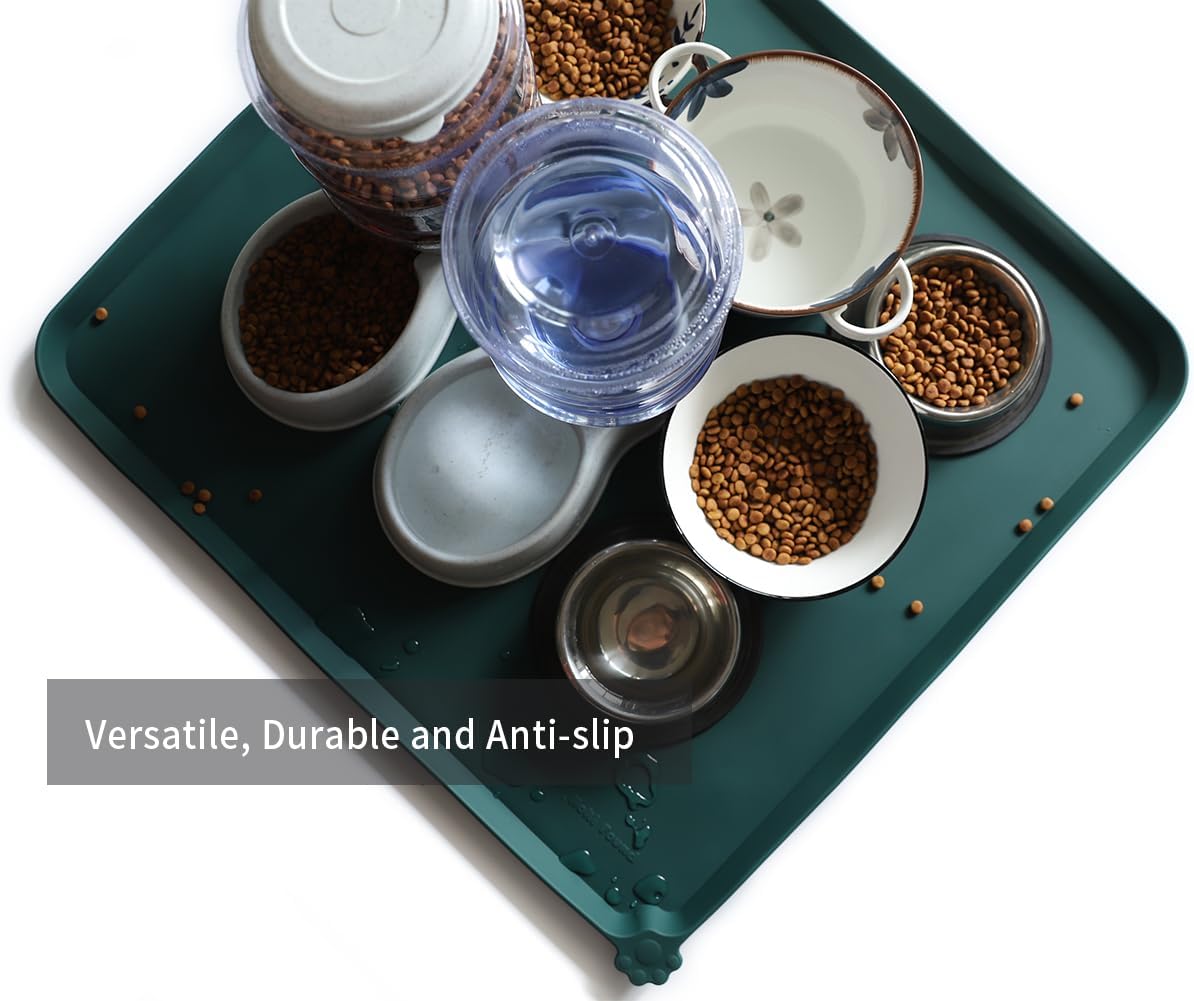 Hoki Found XX-Large Silicone Non Slip Pet Dog Cat Bowl Mats - Placemat for Feeding - Waterproof for Carpet - Dark Cedar