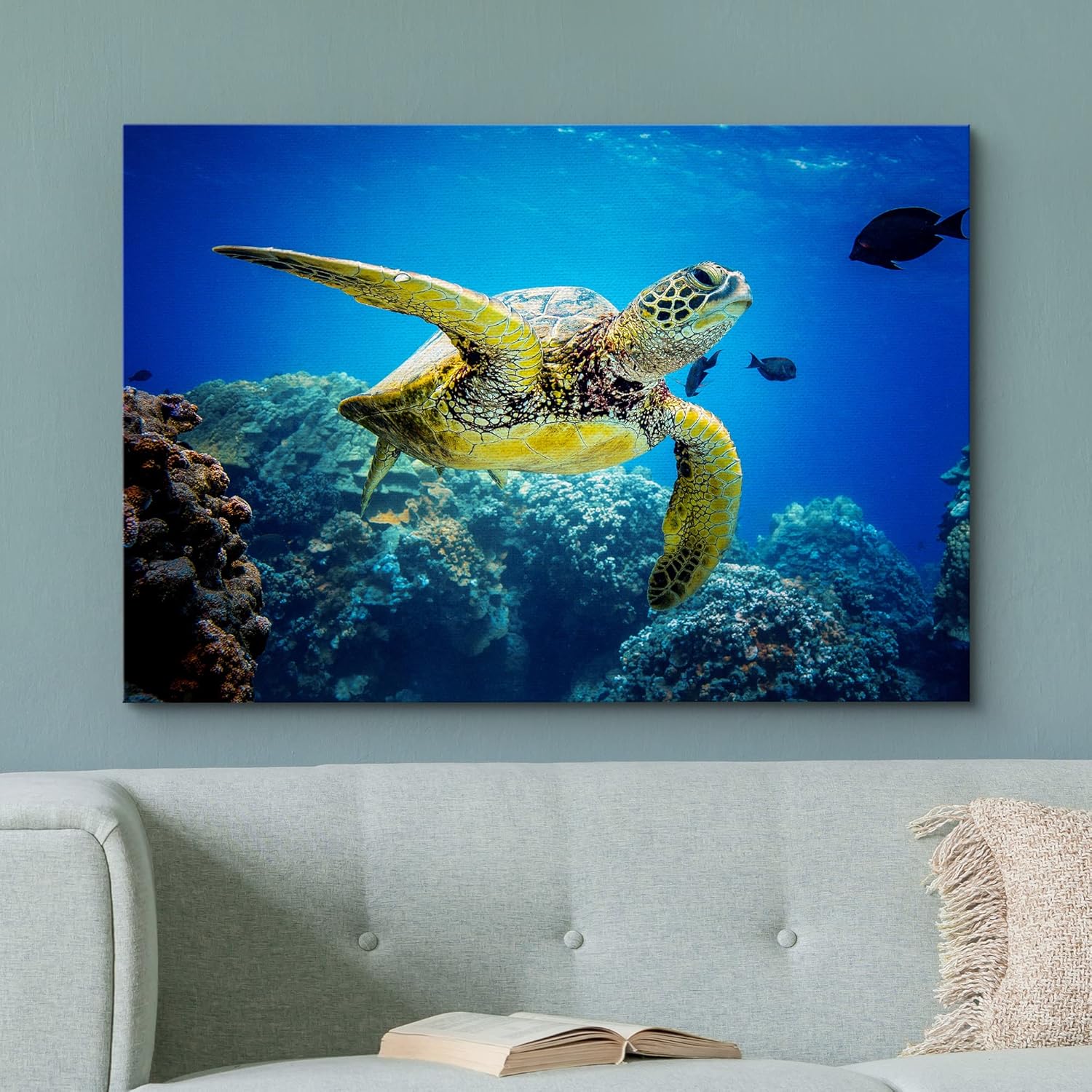 wall26 Canvas Print Wall Art Vibrant Ocean Underwater Swimming Turtle Nature Animals Photography Realism Rustic Scenic Landscape Wilderness Earth Colorful for Living Room, Bedroom, Office - 12"x18"