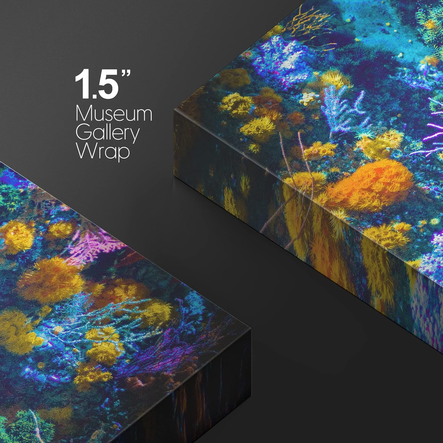 wall26 Canvas Print Wall Art Vibrant Neon Multicolor Anemone Coral Reef Nature Animals Photography Realism Rustic Scenic Landscape Wilderness Earth for Living Room, Bedroom, Office - 12"x18"