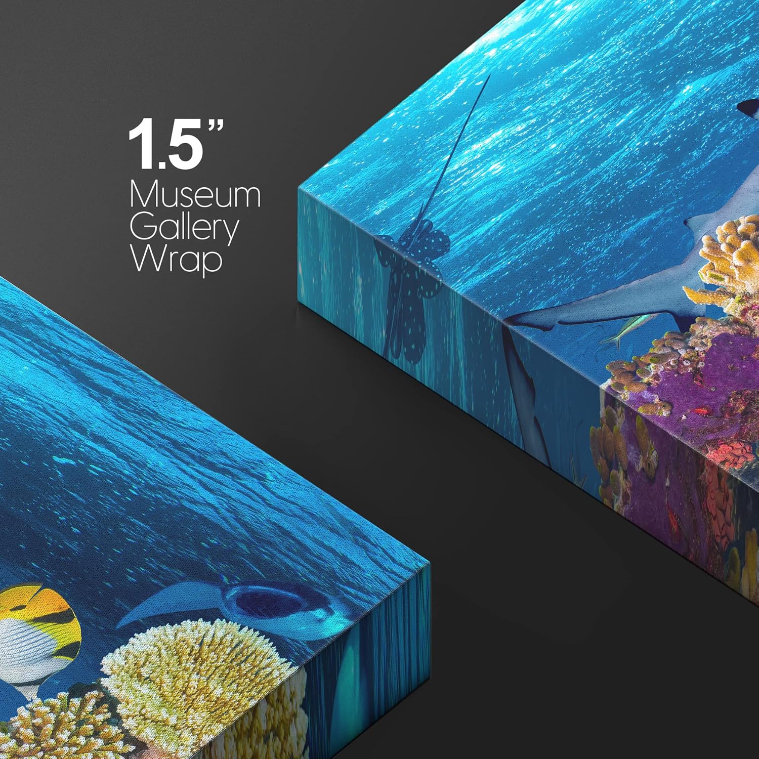 wall26 Canvas Print Wall Art Tropical Island Underwater Turtle Shark Nature Animals Photography Realism Rustic Scenic Landscape Wilderness Earth Colorful for Living Room, Bedroom, Office - 16"x24"