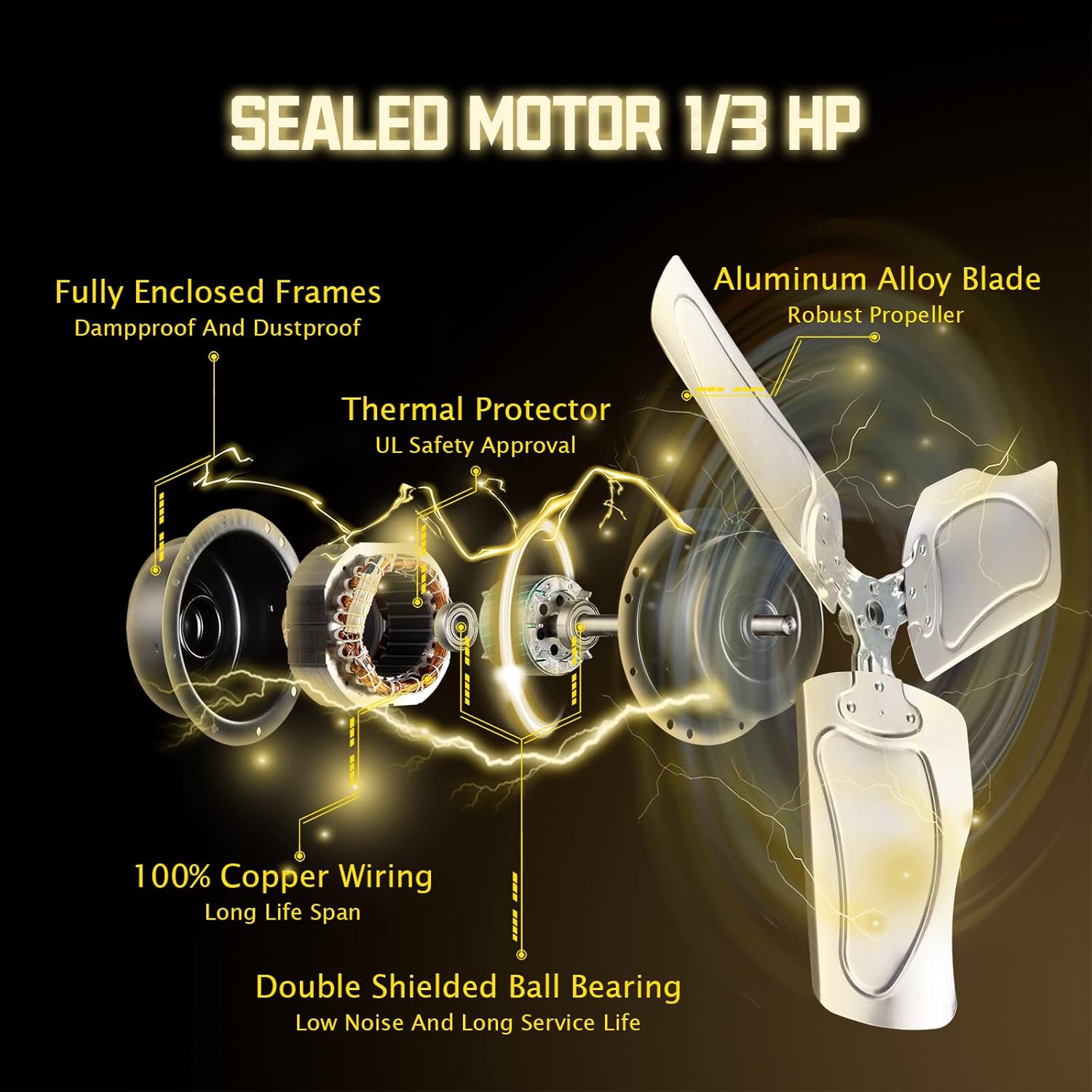 - ăMoves Much Airă: Built with 1/3HP Premium TEAO Enclosed Motor and Shielded Ball Bearings, this heavy duty industrial wall fan provides circulating breeze for large spaces, blowing distance reach 60 feet. It is ideal for Warehouse, Workshop, Factory, Garage, Basement, Greenhouse, Barn, Industrial, Commercial and Residential areas. High speed 9100 CFM / Low speed 7300 CFM