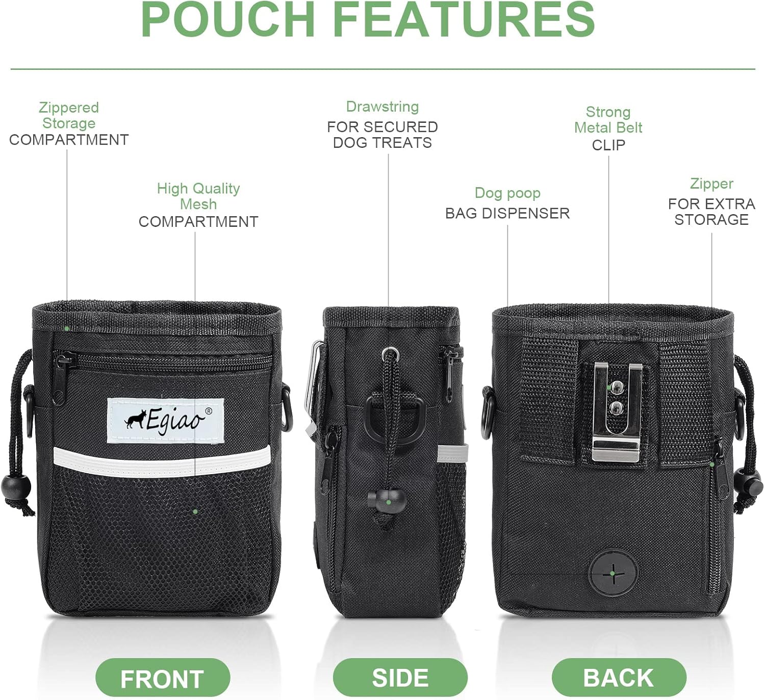 - 🐾Unique and Reasonable Design: Our dog treat pouch has a convenient magnetic closure design, which can be easily opened and closed by one-handed operation. When closed, the items in the dog food bag will not fall regardless of bending, running, etc. And dog treat bag fits your waist perfectly, helping you to reduce fatigue when interacting with the dog for a long time, and can meet all your training needs.