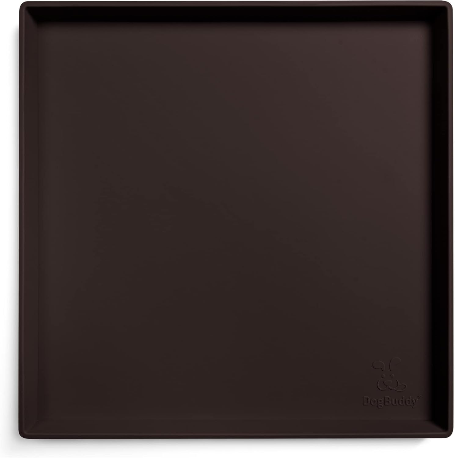 DogBuddy Dog Food Mat – Waterproof Dog Bowl Mat for Food and Water, Silicone Pet Feeding Mats for Floors, Non-Slip Placemat with High Edges for Dogs Bowls, Puppy Essentials (XS: 11" x 11", Coffee)