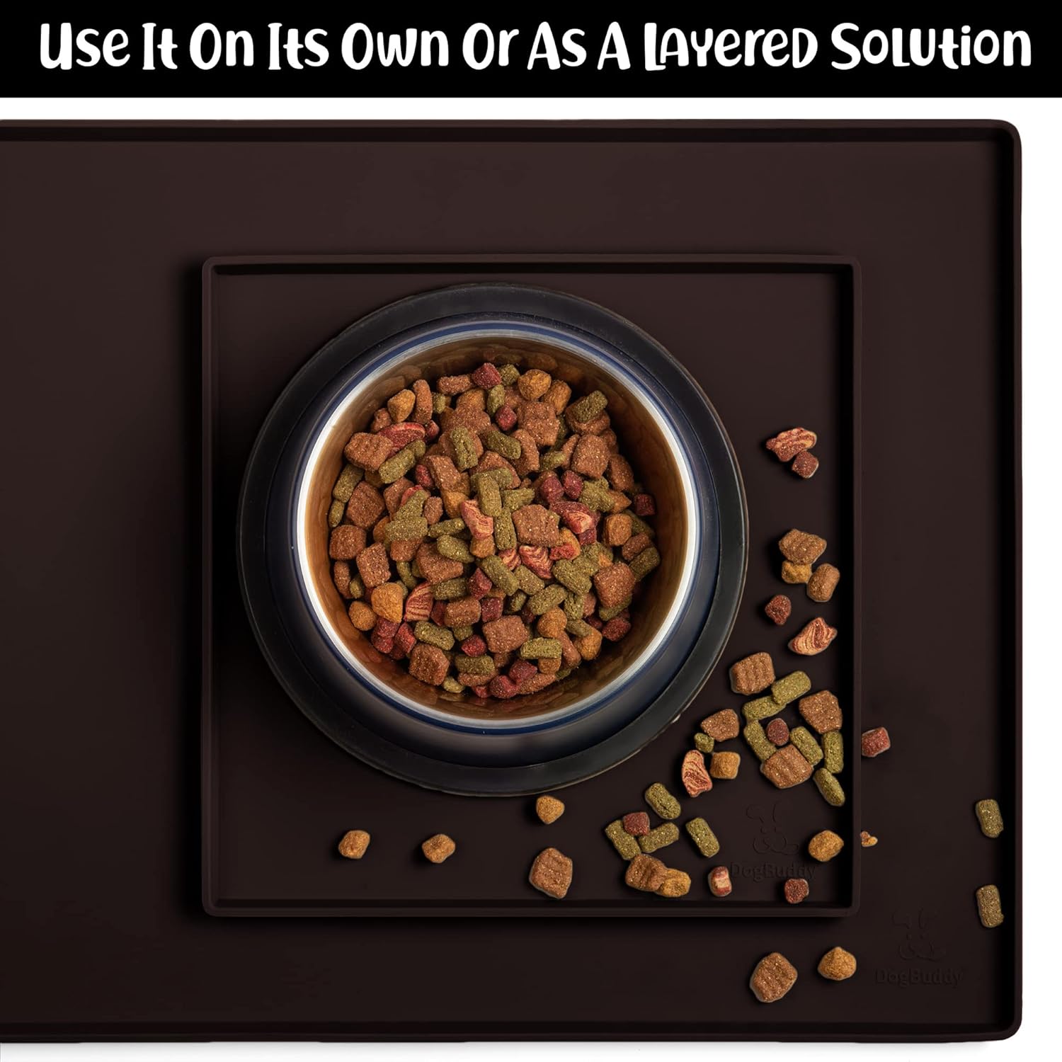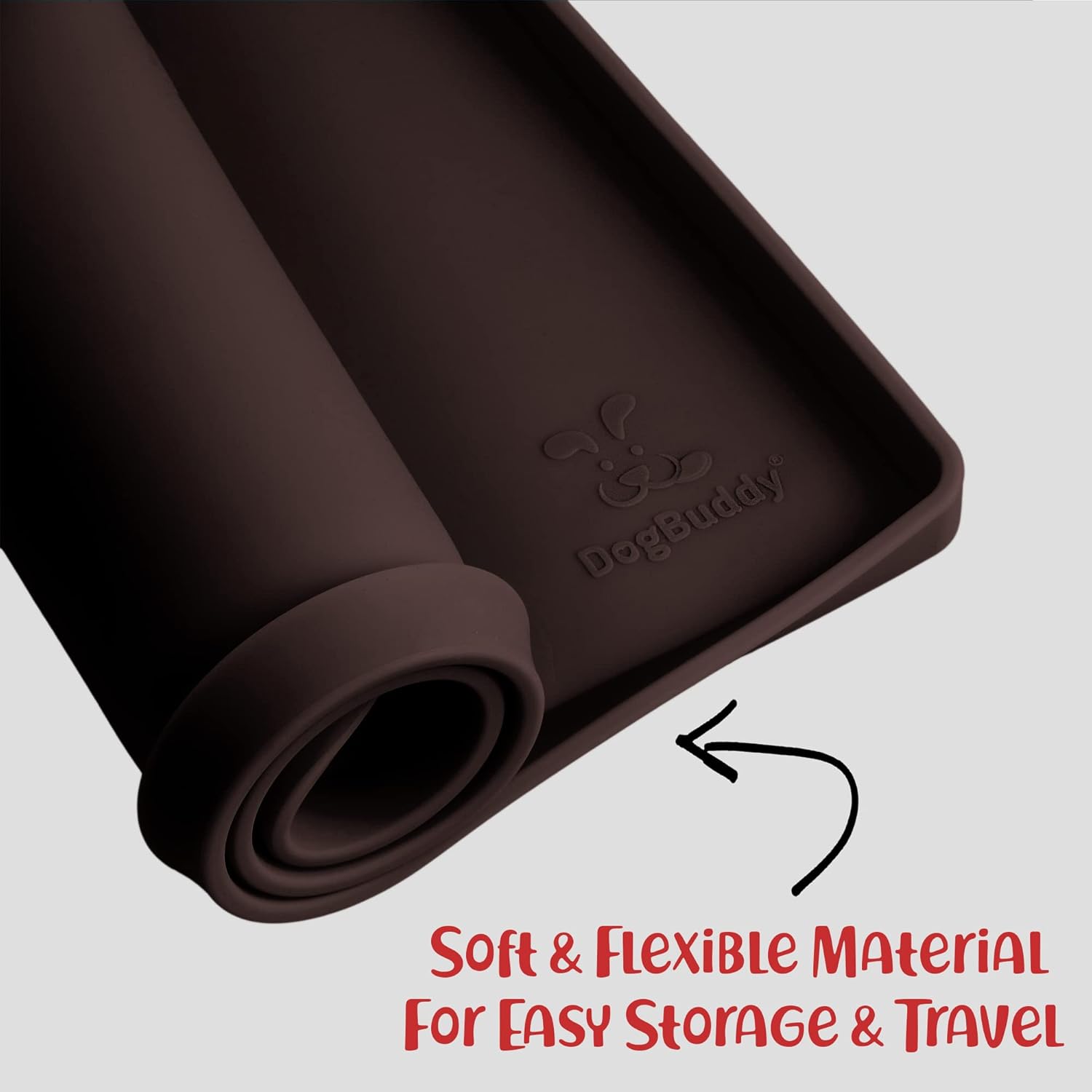 - Less Mess & Less Stress: Super high edge (0.6”) of DogBuddy Dog Food Mat keeps the spilled food and water on the mat and away from your beautiful floor. Silicone is naturally 100% waterproof, so what happens on the mat stays on the mat.