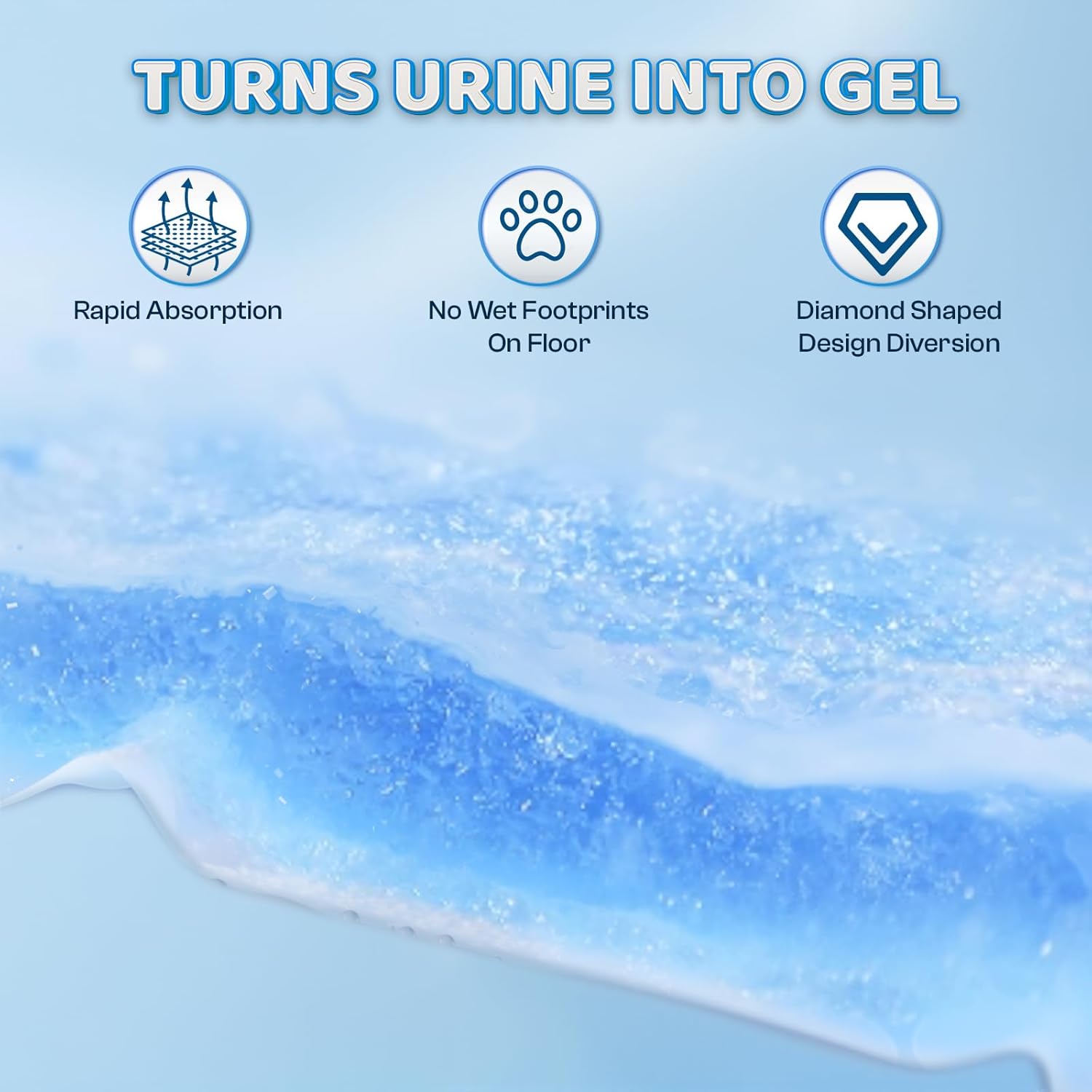 - 【Supper Liquid Lock-in Diamond Quilting Design & Quick Dry】diamond quilting design absorb liquid faster and polymer turns liquid into gel, preventing tracking, liquid overflow, and odor. Even handy for cold wet weather, make dog training pads are easy to pick up without leakage or overflow