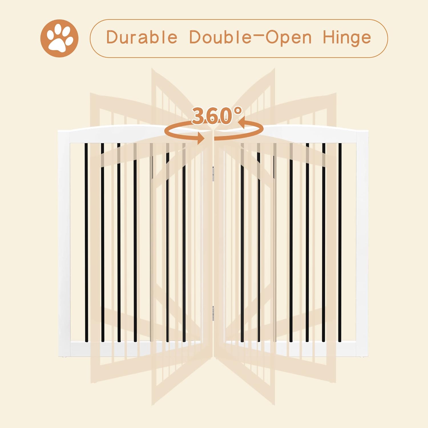 - 【NO ASSEMBLY REQUIRED】: The free standing dog gate is fully assembled and ready to use! Unfold the indoor dog fence and place it anywhere as a pet fence, room divider. Moreover, don't worry about the floor being scratched as the Non-slip rubber pads keep protecting your floor.
