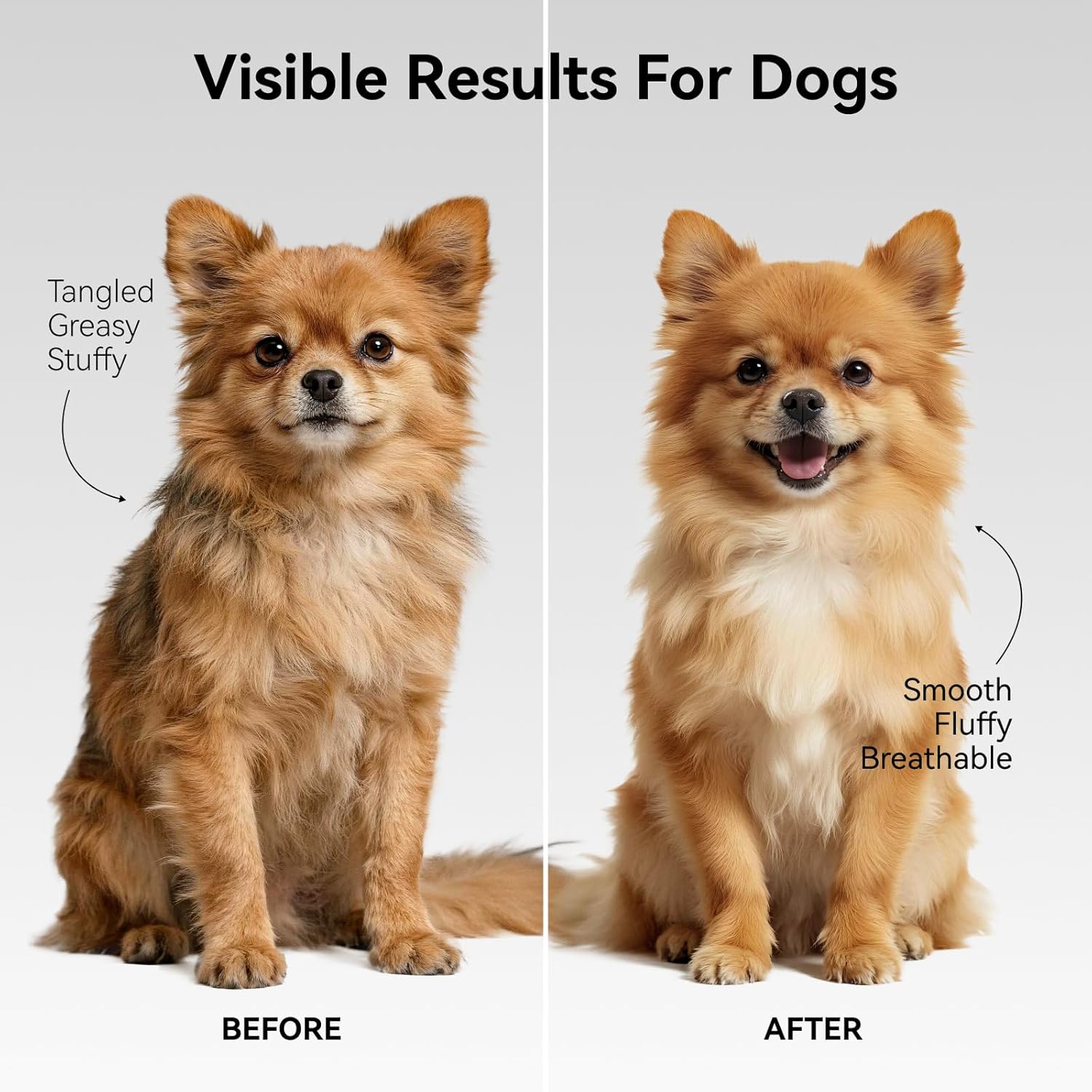 - 【PROFESSIONAL · Undercoat Rake】As a deshedding brush for cats & dogs, simply run it through your pet's fur in the direction of growth and apply gentle pressure to easily remove loose hair. As a dematting comb, slowly and gently comb through tangle-prone areas such as ears, chest and legs to painlessly remove mats and tangles. Just 1–2 sessions a week keeps your pet’s coat clean, soft, and tangle-free—no groomer visit required.