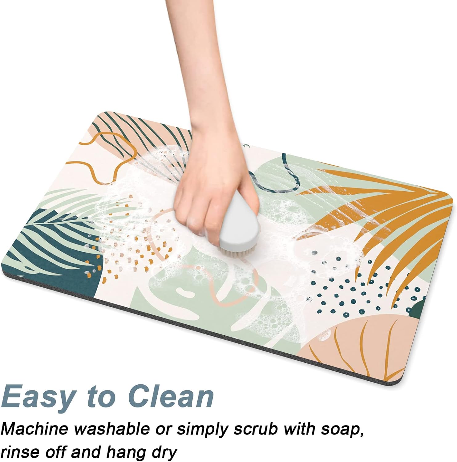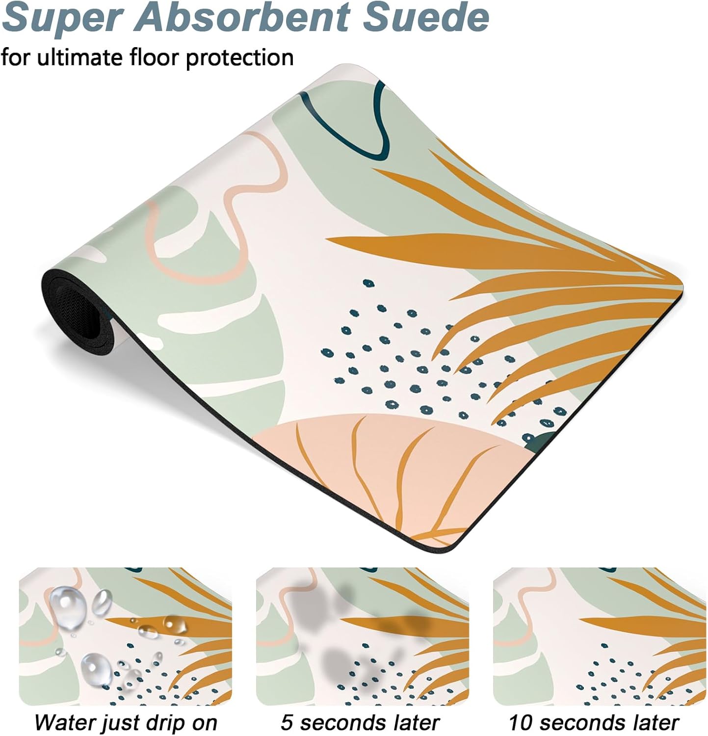 - Super Absorbent Placemat: Aesthetic dog food mat surface is made of absorbent suede with soft, anti-fray which can quickly absorb liquid and wet food stains to prevent prevents food & water from spilling onto floor