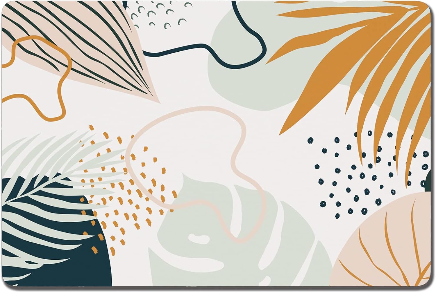 Rnivvi Dog Food Mat, 12" x 19" Boho Absorbent Dog Cat Bowl Mat for Food and Water, Cute Anti-Slip Rubber Pet Feeding Rug Protect Floors, Puppy Placemat for Feeding & Watering Supplies, Tropical Leaves