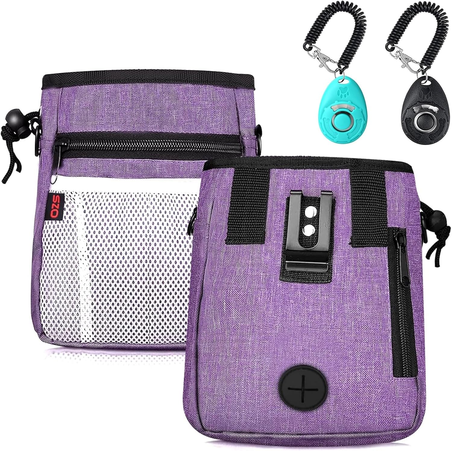 Dog Treat Pouch - 3 Ways to Wear Treat Pouches for Pet Training and 2 Pieces Clicker Taining for Dogs, Dog Training Treat Pouch Bag and Dog Clicker for Training with Waist Belt Shoulder Strap - Purple