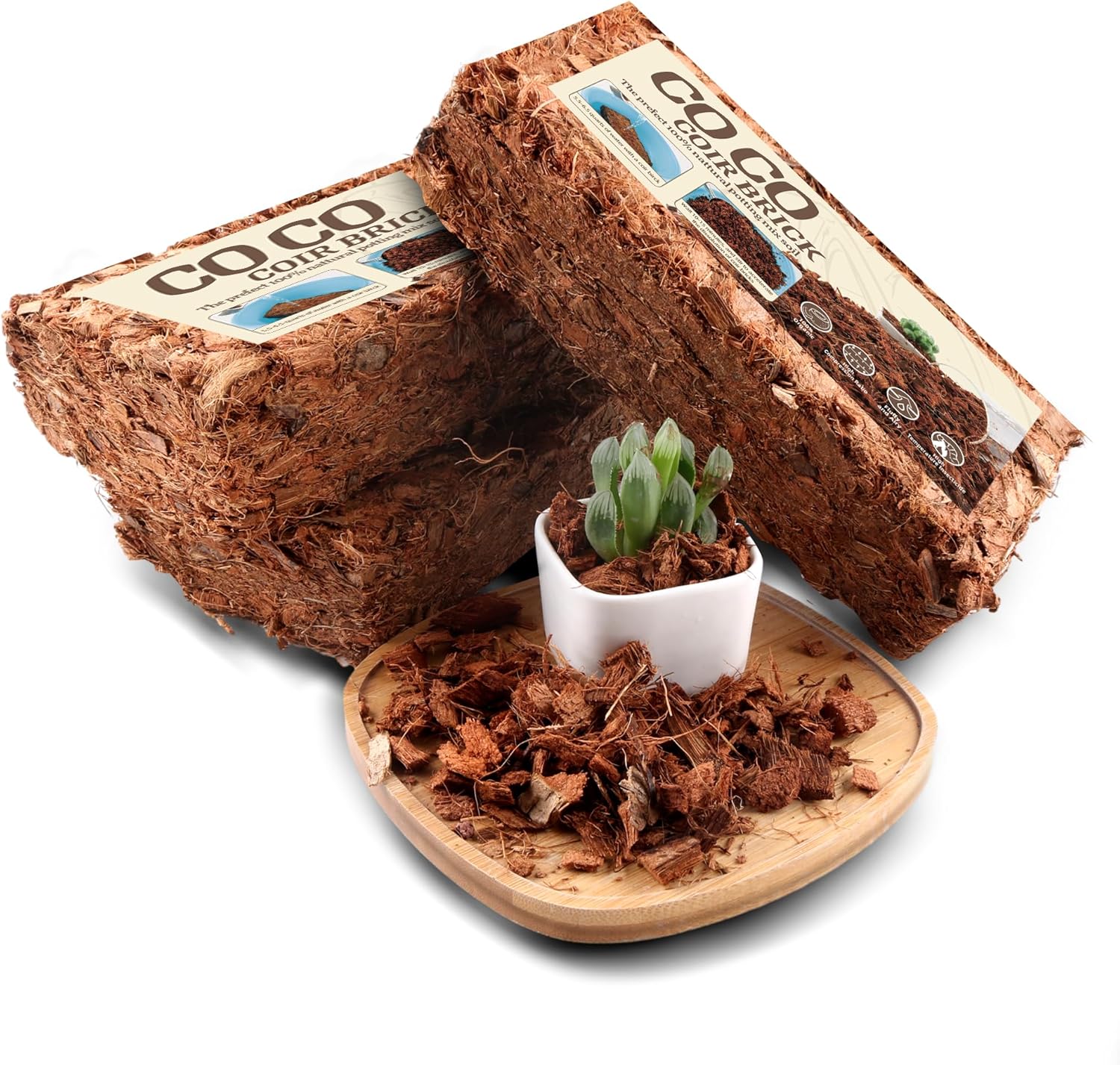 - [100% NATURAL & ORGANIC COCONUT CHIP]: Our coco chips bricks is made from the coconuts husk, which are a natural and sustainable resource. It is providing a natural and eco-friendly growing medium for your plants making coconut husk chips an eco-friendly choice for your gardening needs. As well landscaping, reptile bedding, terrarium bedding, and ground covering.