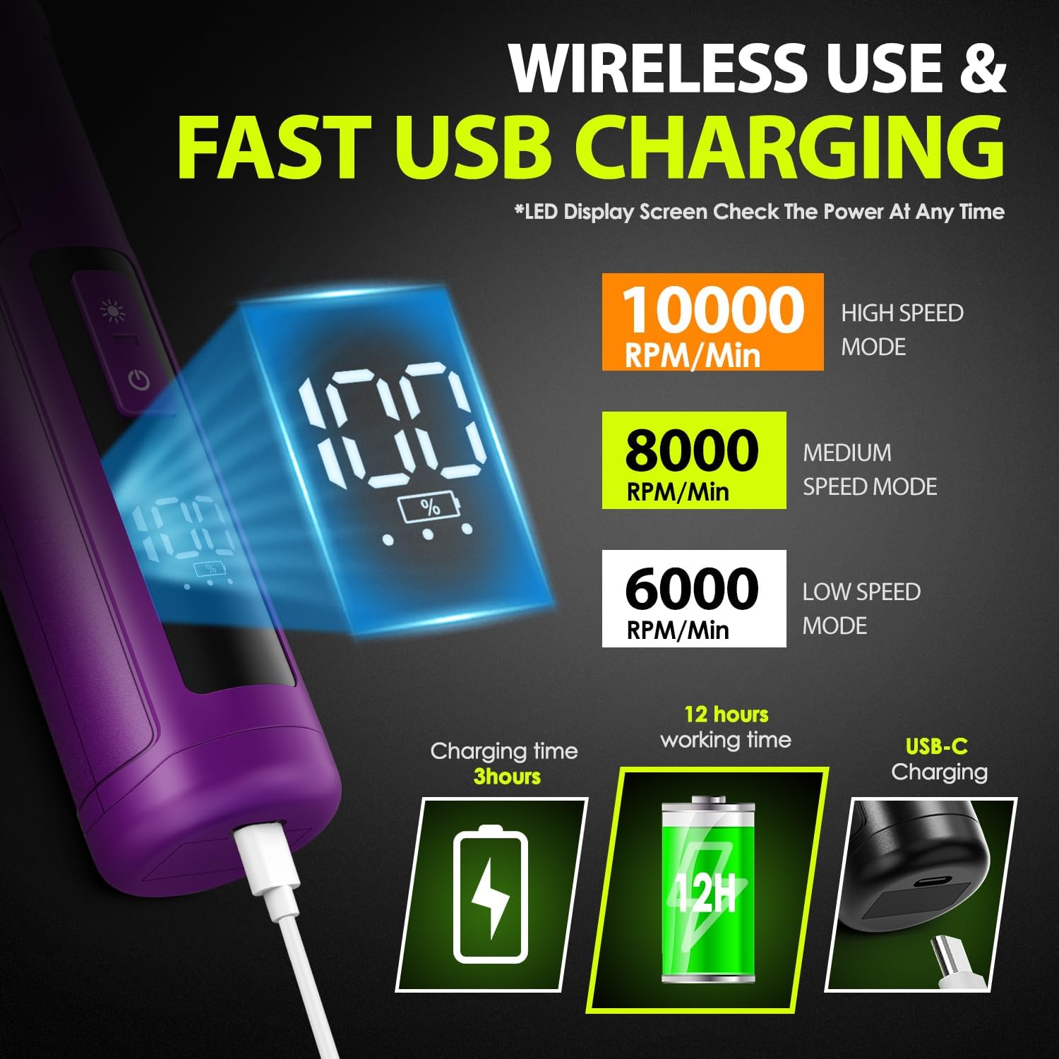 - 【3 Speed Switch & Grinding Ports】: IREDOON dog nail trimmer boasts a 3-speed switch and 3 grinding ports, which allows pet owners to adjust the speed and grinding settings based on their pet's size and nail hardness.
