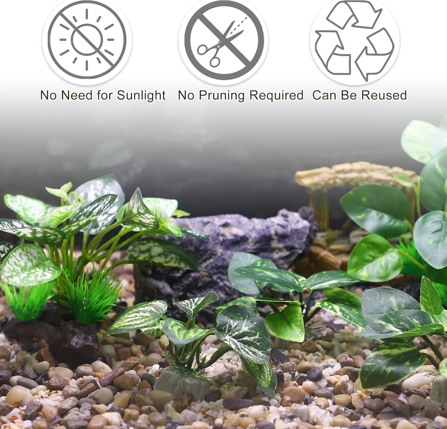 - Quality Plastic Material - Artificial Plastic Plants for fish tanks are made of plastic materials, which are not easy to fade, not easy to rot, and deform, will not affect water quality, and can be used for a long time.