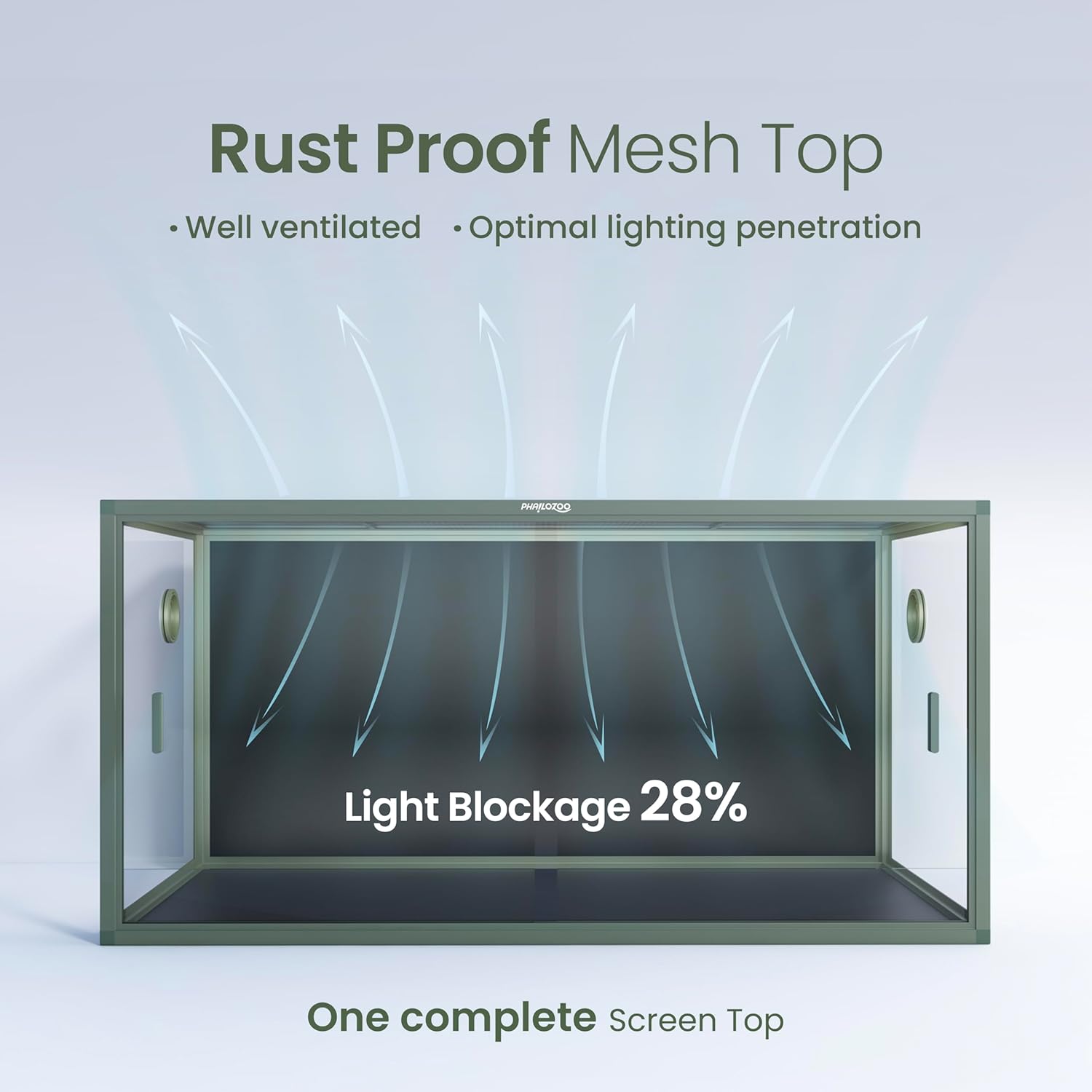 - ăHighly AdaptiveăWell-lit screen top with only 28% blockage. Compatible with many reptile accessories and equipment, such as heat lamps for reptiles, reptile humidifiers, reptile misters, reptile foggers, reptile UVA and UVB. Our reptile terrarium is great for holding temps and humidity.