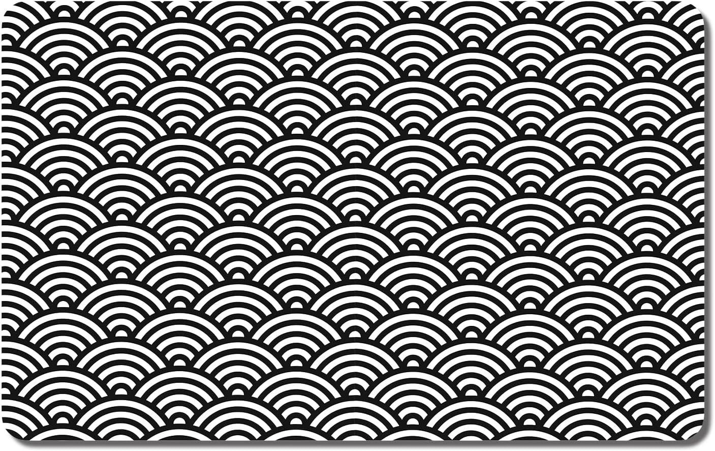 Rnivvi Dog Food Mat, 12" x 19" Absorbent Dog Cat Bowl Mat for Food and Water, Cute Anti-Slip Rubber Pet Feeding Rug Protect Floors, Puppy Placemat for Feeding & Watering Supplies,Gray Rounded Wave