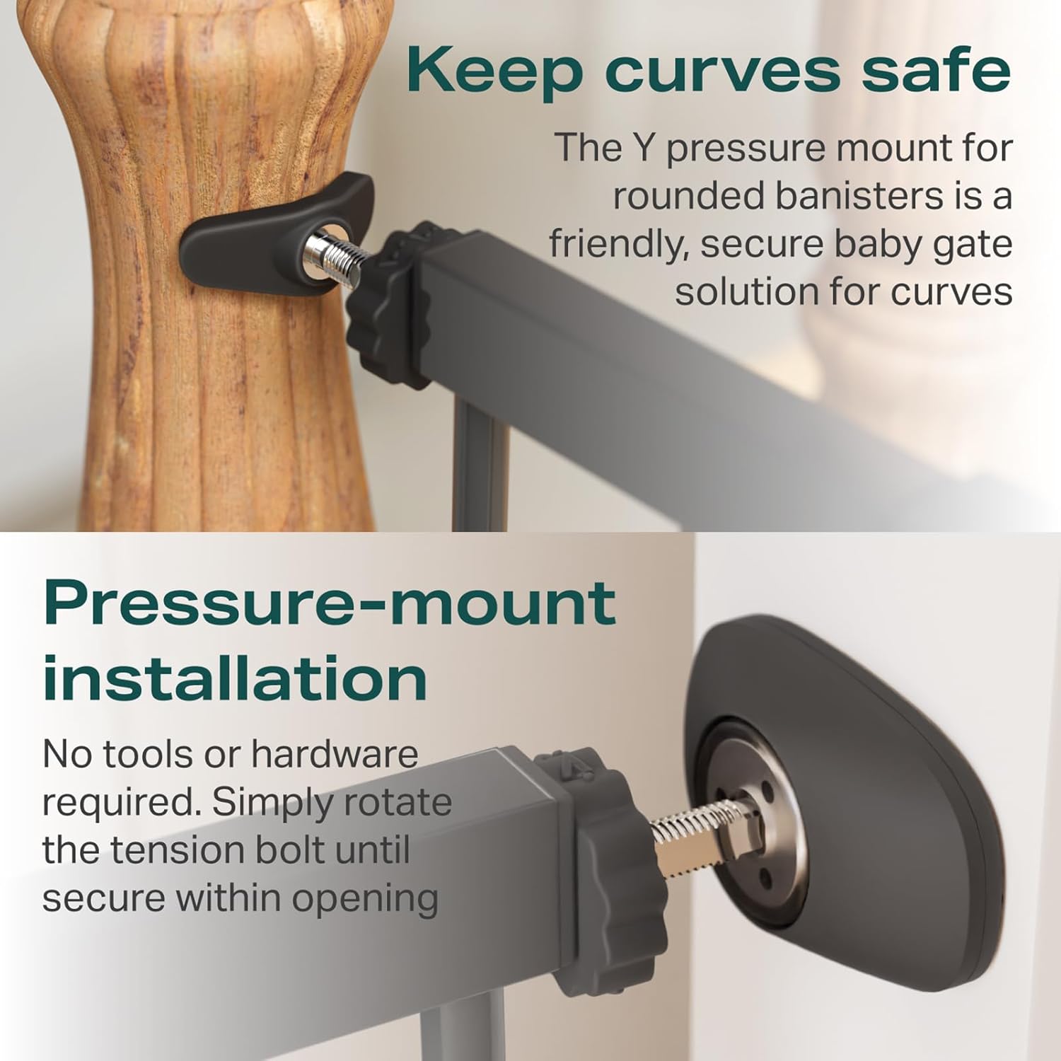 - 【Easy to Install】Simple pressure mounting can be done in just 10 minutes with no tools required, making it perfect for stairs, hallways, doorways, and open spaces