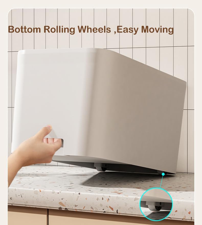 - 【Moveable pet food bin with Wheels】:The 4 detachable rolling wheels make it easier to move around the container even when it's full, and it lifts the cat food bin up to aviod the moisture from floor.