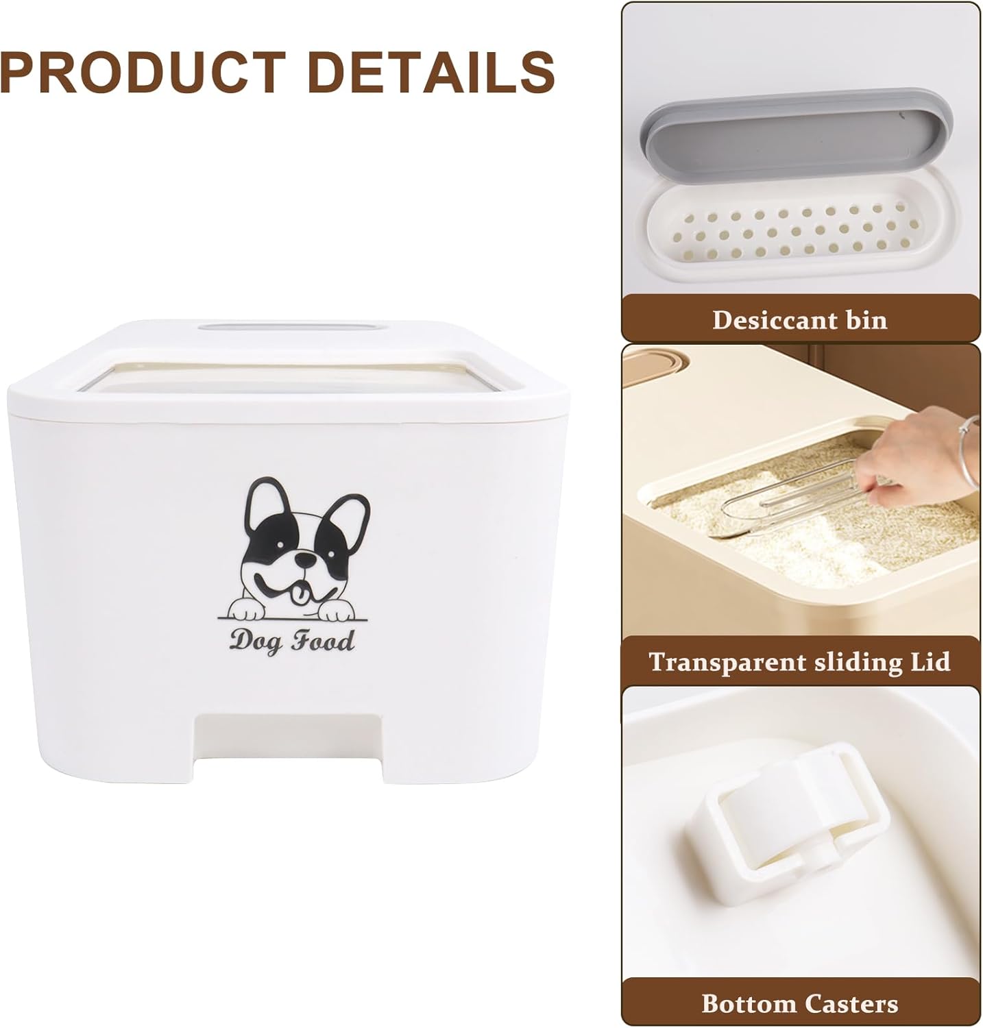 - 【Large Capacity Pet Food container 10lbs】-This airtight cat food bin size is 15''x8.7''x5.9'' in (IN),it can hold up to 12lbs a variety of pet food or treats, your cute family member's dry foods will be kept fresh in our sealable pet food container.