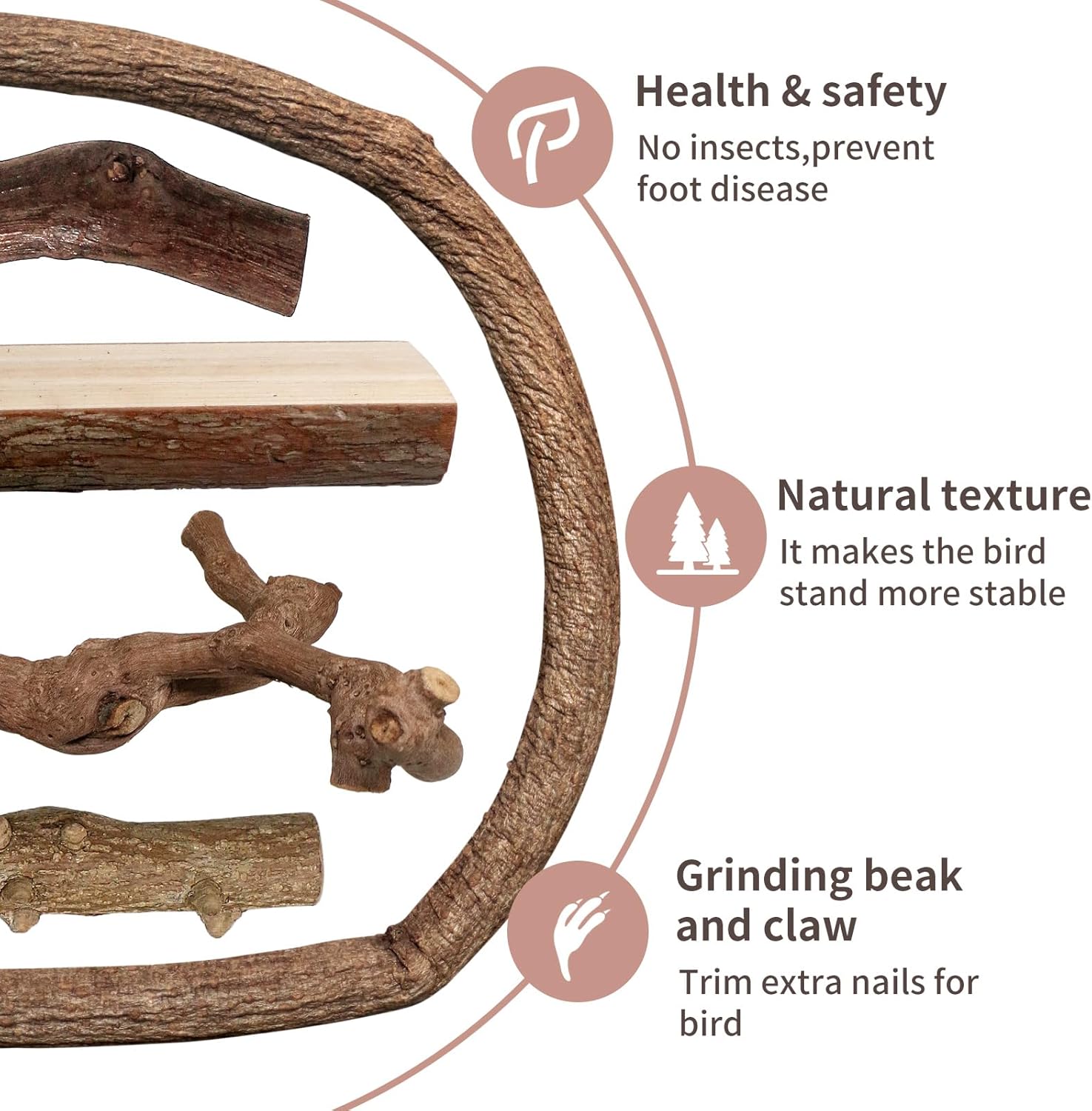 - 【High Quality Wood】Made of 100% Natural Wood, after sterilization and deworming,Our Bird Perches Are Environmentally Friendly, Nontoxic,Durable and Free of Harsh Chemical Odors, Safe for Your Small Pets and in Line with the Requirements of a Bird's Natural Habitat. There May Be Some Wood Chips in the Package, Which Are Dropped by the Tree Skin During Transportation, They Are Not Garbage, Please Understand.