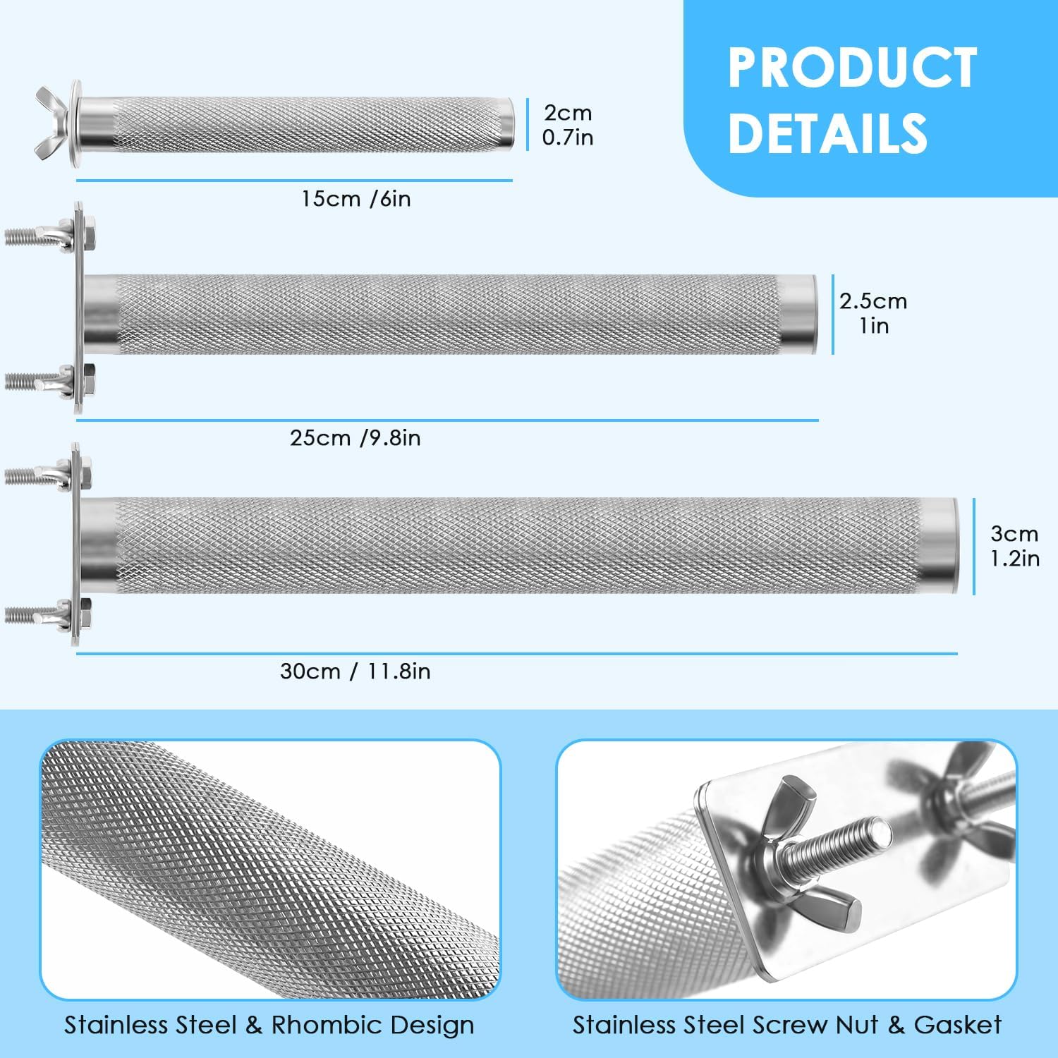 KATUMO Conure Perch - Stainless Steel Bird Stand Rough-surfaced Branch for Small Birds (6 x 0.7 inch)