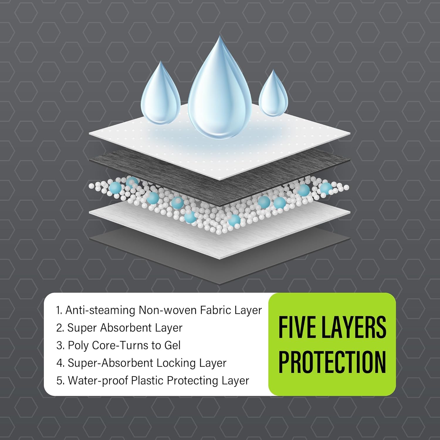 - Leak Proof Protection - Each COCOYO training pad features the PE back layer with extra border to prevent leaks. The absorbent layer absorbs liquid and turns it into gel for easy clean up.