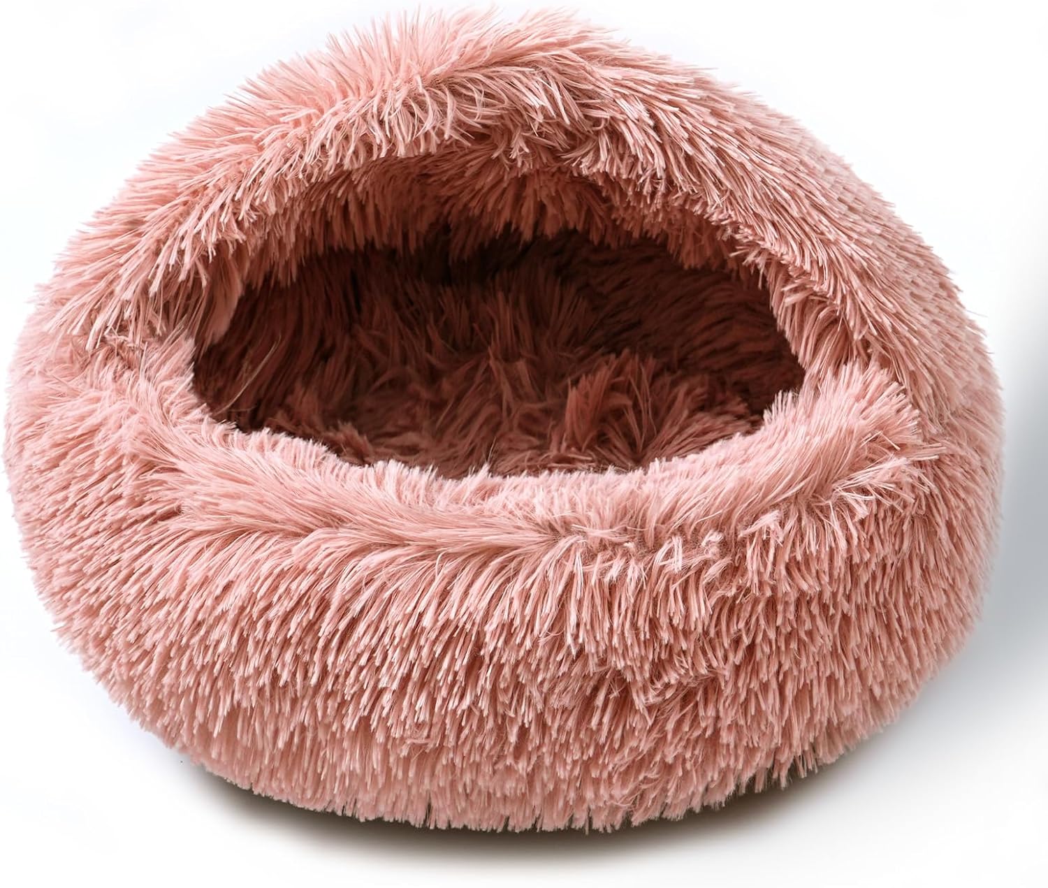Cat Bed for Indoor Cats, Calming Cozy Cave with Self-Warming Plush, Entire Bed Machine Washable & Anti-Slip Base, Breathable Pet Bed for Small Cats&Dogs All Seasons (Leather Pink, 20 * 20inch)