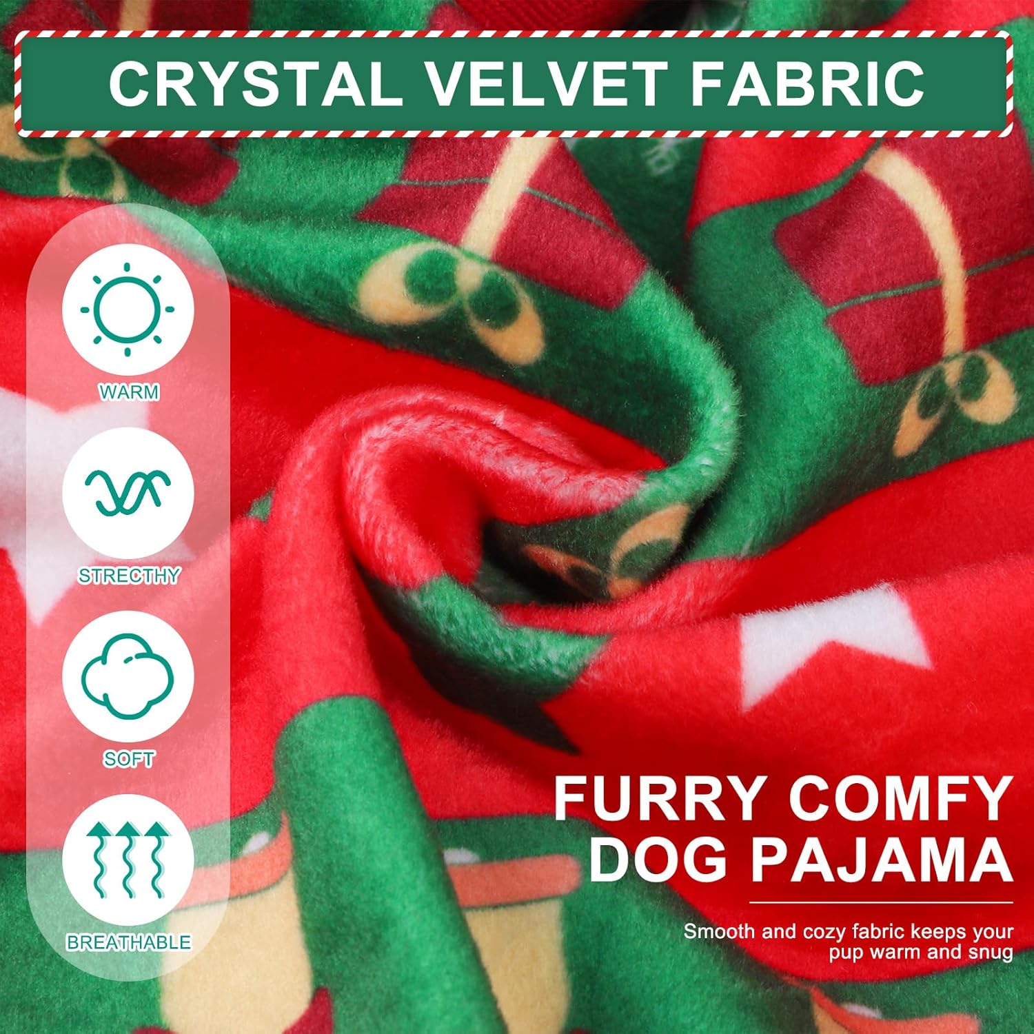 - High-quality Material: Our dog pajama use premium crystal velvet fabric that is soft, comfortable, and non-irritating, giving your pet the ultimate comfort. At the same time, this fabric has excellent insulation properties, effectively blocking out cold air and providing a warm environment for your pet