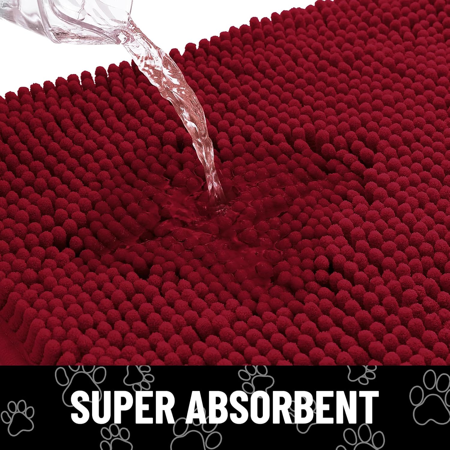 Smiry Dog Door Mat for Muddy Paws, Absorbent Dirt Trapper Non Slip Quick Dry Washable Chenille Mat for Mud Dogs, Entry Rug for Indoor and Outdoor (36x24 Inches, Red)