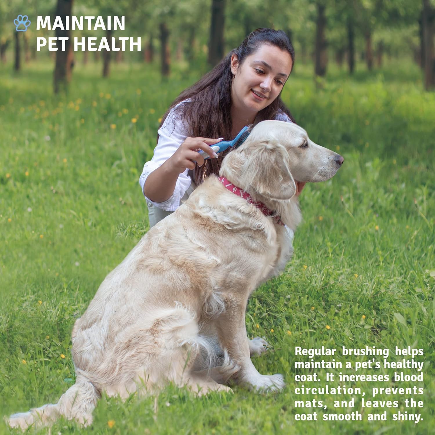 - MAINTAIN PET HEALTH: Regular brushing helps maintain a pet’s healthy coat, increases blood circulation and prevents mats by leaving a pet’s coat smooth and shiny; it also keeps the air cleaner and healthier.