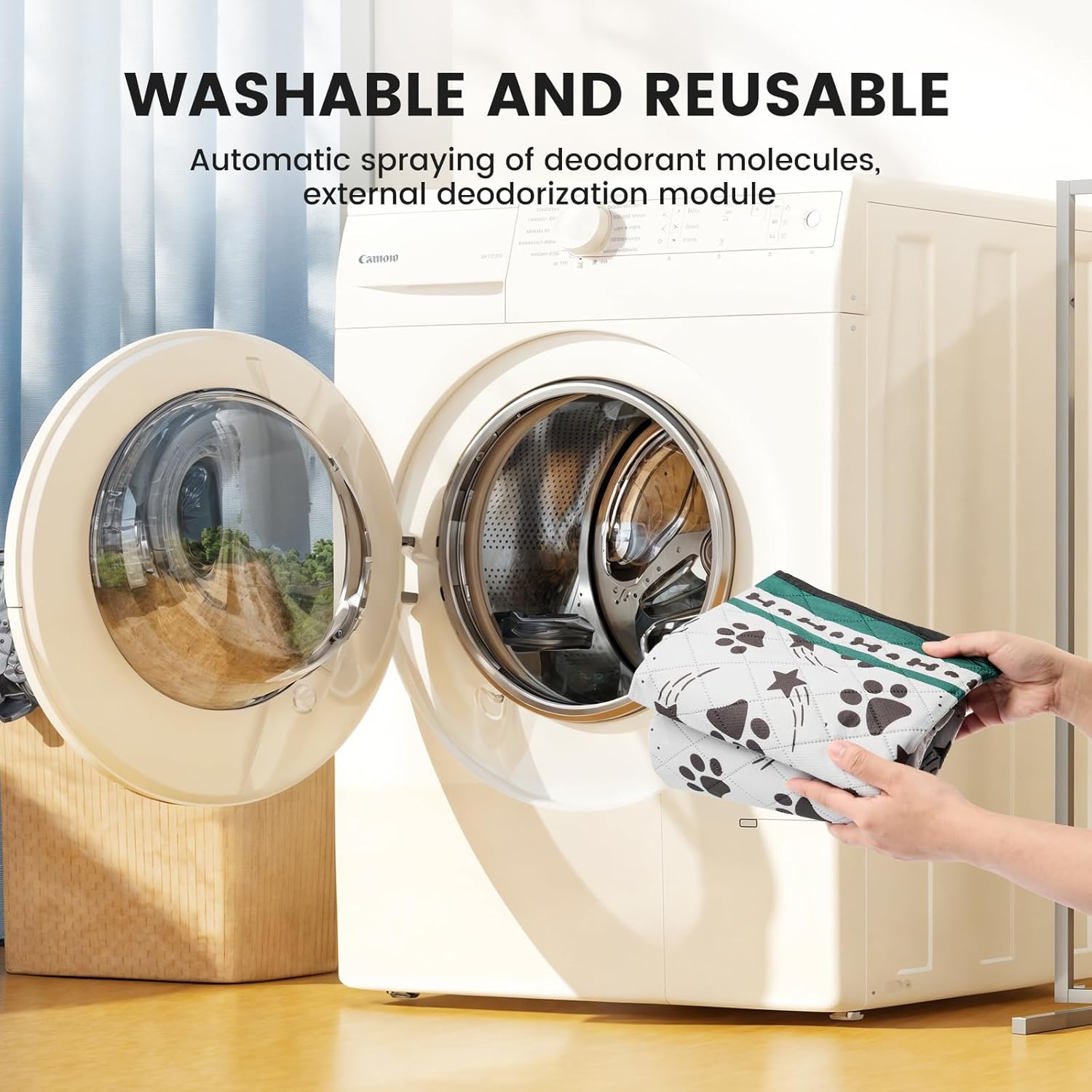 - Washable Pet Pad: This washable pee pad is infinitely reusable and machine washable. The washed pee pads will be restored to like-new condition without tearing, fraying or losing softness.