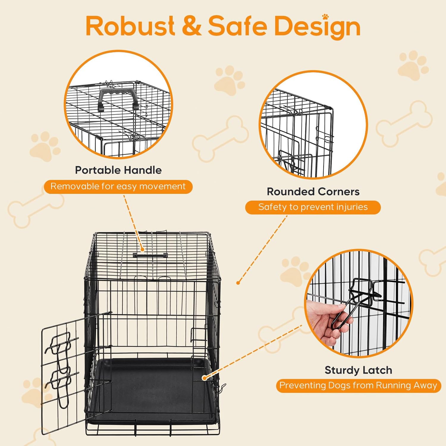 - OPTIMAL SECURITY: The rounded edges and smooth rounded corners, ensure a safe environment for your pet. The dog crate is equipped with thick metal mesh and double doors, both featuring heavy-duty sliding bolt locks. These features not only prevent your dog from escaping but also provide optimal protection for your furry friend.