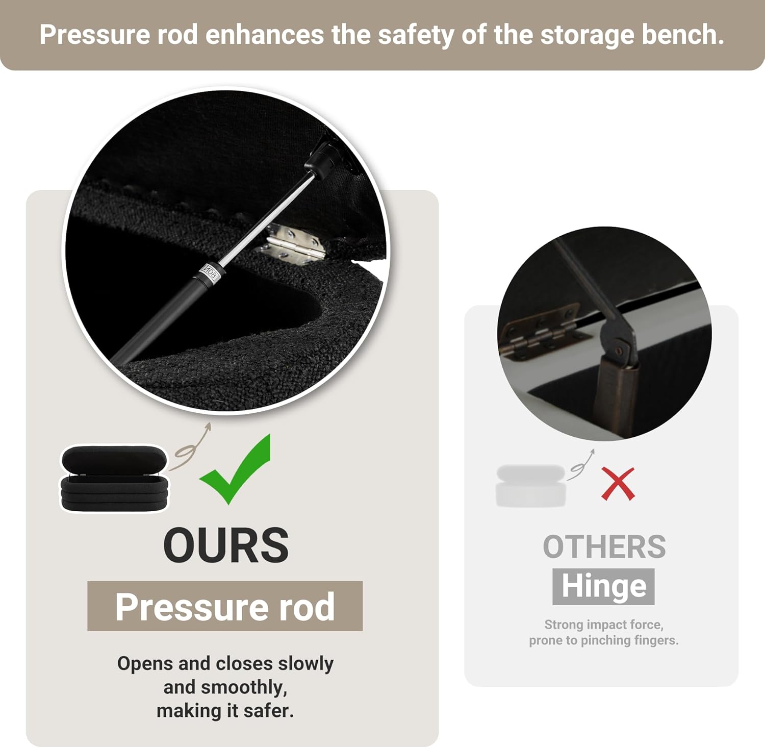 - SAFE PRESSURE BAR AND ROUNDED DESIGN: Ottoman bench features a pressure bar design that is safe and effortless to lift. The bench rounded appearance design helps to avoid children's injuries while playing, suitable for families with children