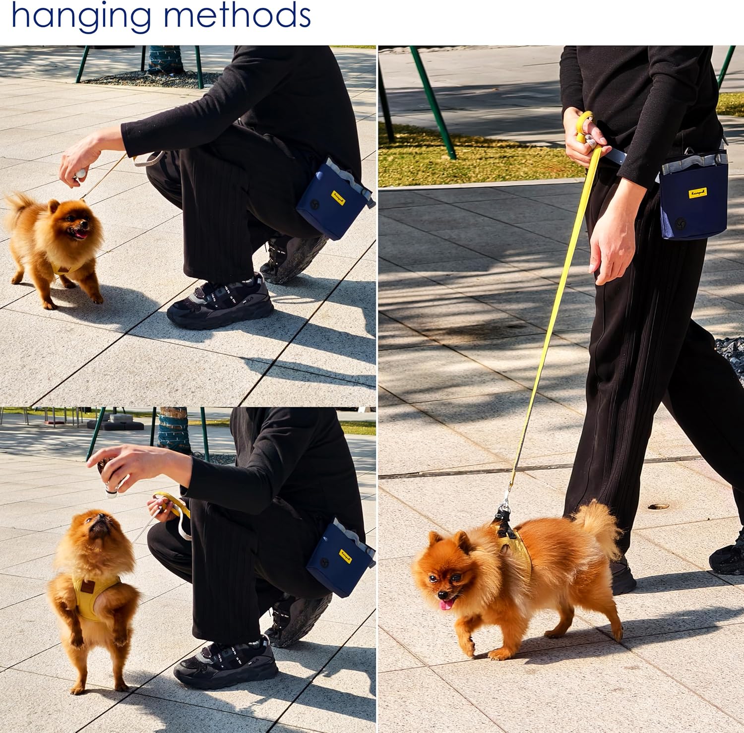 - 3.Enhanced Magnetic Closure: The bag features two sets of powerful magnets at the opening, ensuring automatic closure and preventing food from spilling, even when bending over. A convenient pull tab allows for one-handed opening when you need access to the contents of your dog treat pouch. The strong magnets make it a perfect solution for training and walking, ensuring your treats stay secure in the dog treats holder for training.