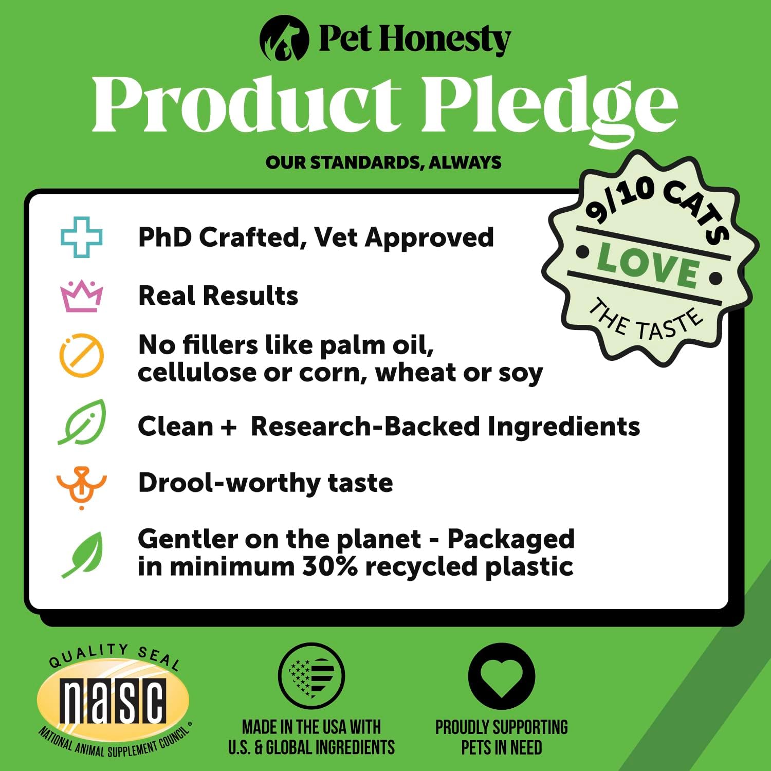 - THE HONEST DIFFERENCE: Our products are made with clean, science-backed ingredients for results you can trust, & with no fillers, artificial preservatives, colors, or flavors, you'll have no doubt your dog is getting the best. Proudly supporting pets in need nationwide & using recycled plastic in our packaging, there's also no doubt that we're committed to doing our best. -- All products are made in the U.S.A. | NASC Member Company