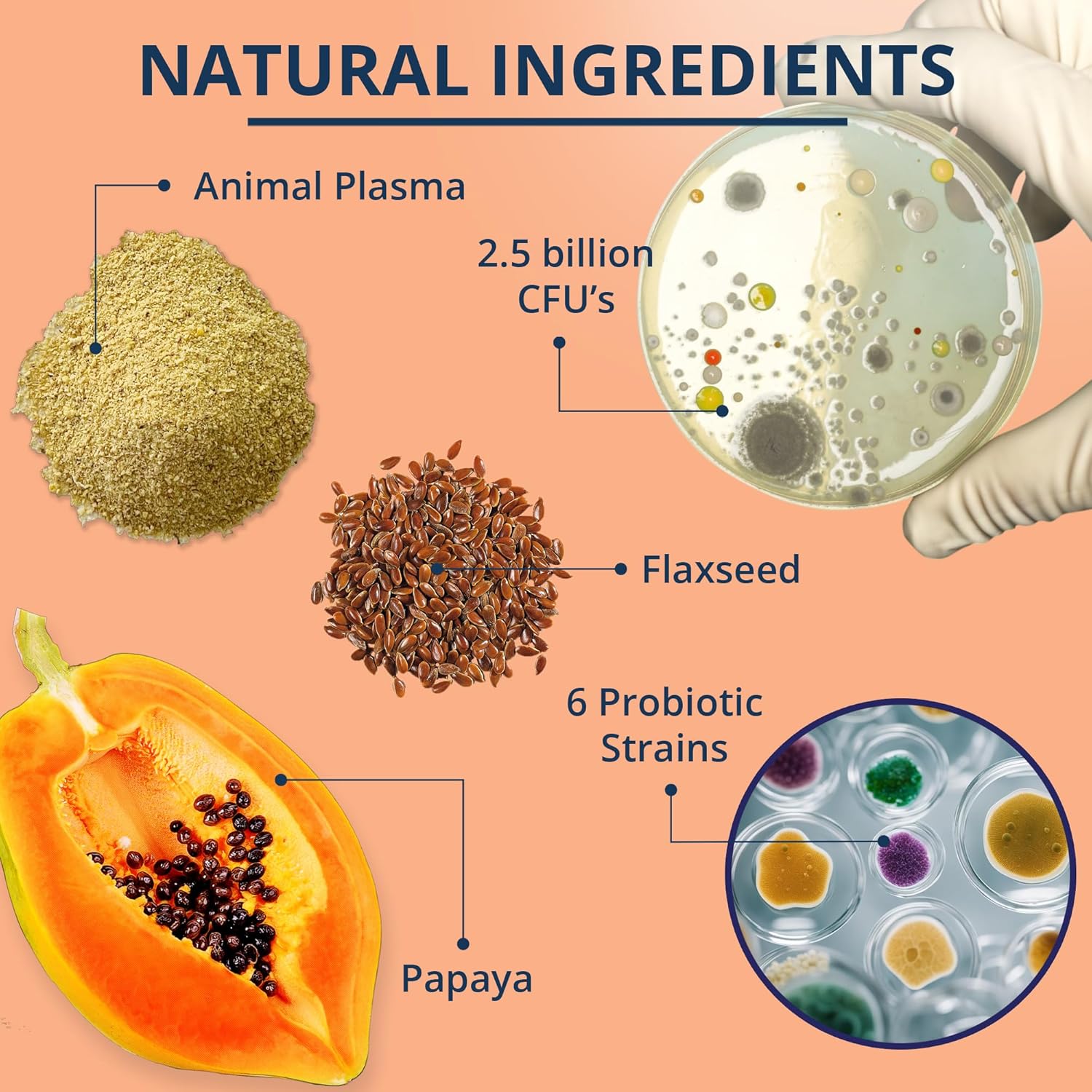 - šæ PROBIOTICS & FIBER BLEND: Combines 6 probiotic strains, pumpkin, and flaxseed to deliver 2.5 billion CFUs for optimal gut health.