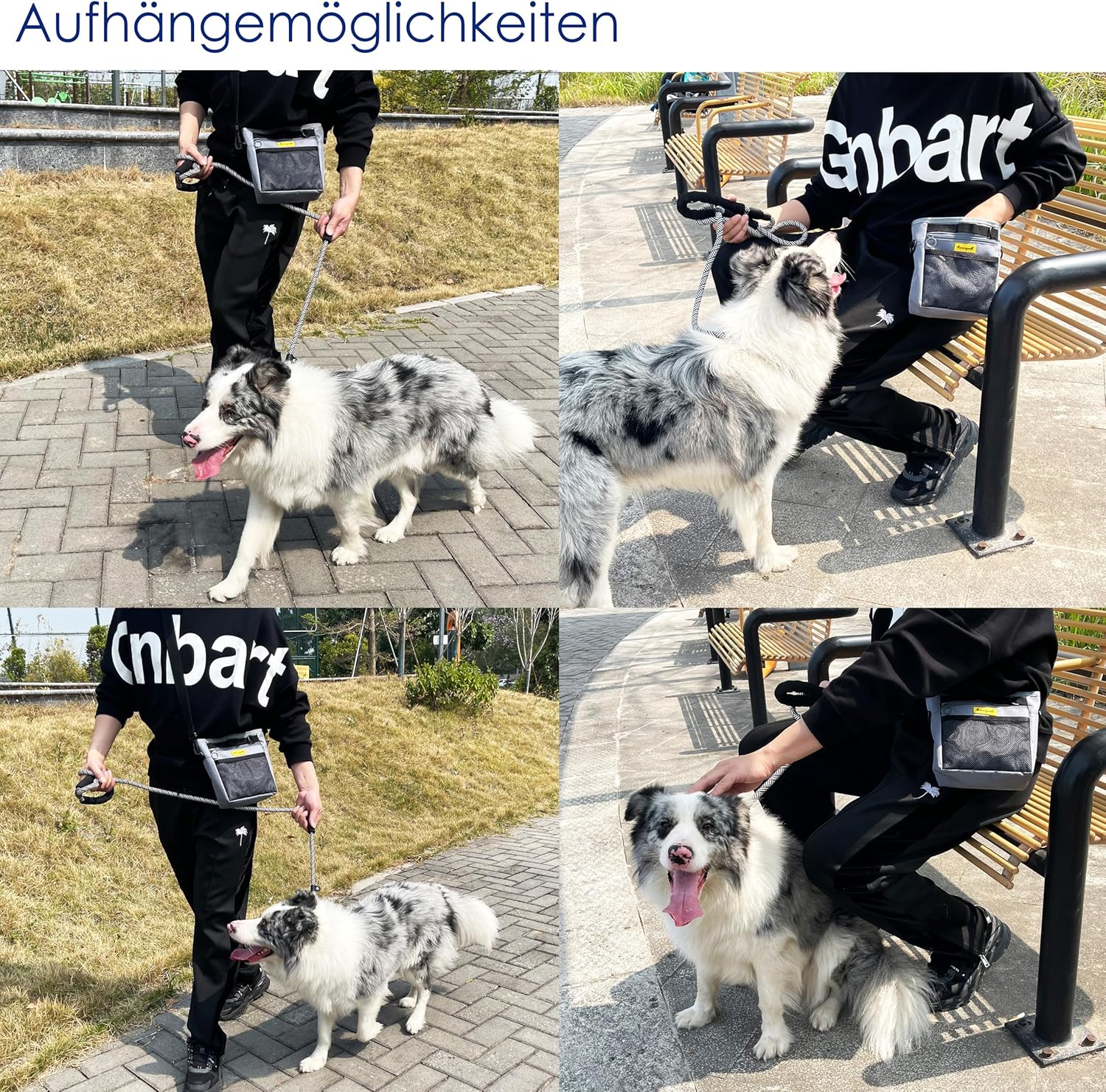 - 2.Ample Space for Accessories: The silicone bag can hold up to 4 cups of dog treats, serving as an ideal dog treat bag. The front of the pocket treat pouch features a large pocket for your phone, and an additional opening has been added for easy access to poop bags. On the side of the dog training treat pouch, there's a ring to hang the included dog training clicker, keeping it within easy reach at all times. This bag is perfectly suited for your outings and is an essential dog bag for treats, whether you're training or walking your pet.