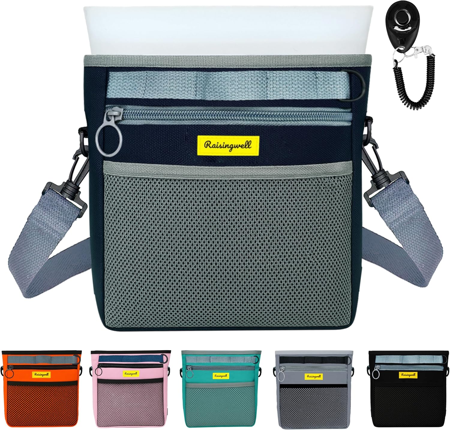 - 5.Durable Tech Material: Raisingwell's dog treat training pouch is made from durable, washable, and non-toxic fabric. Notably, its waterproof lining solves the problem of difficult-to-clean interiors of training bags, making it a great choice for your dog treat bag or dog treat fanny pack.
