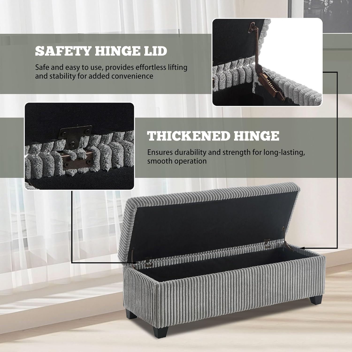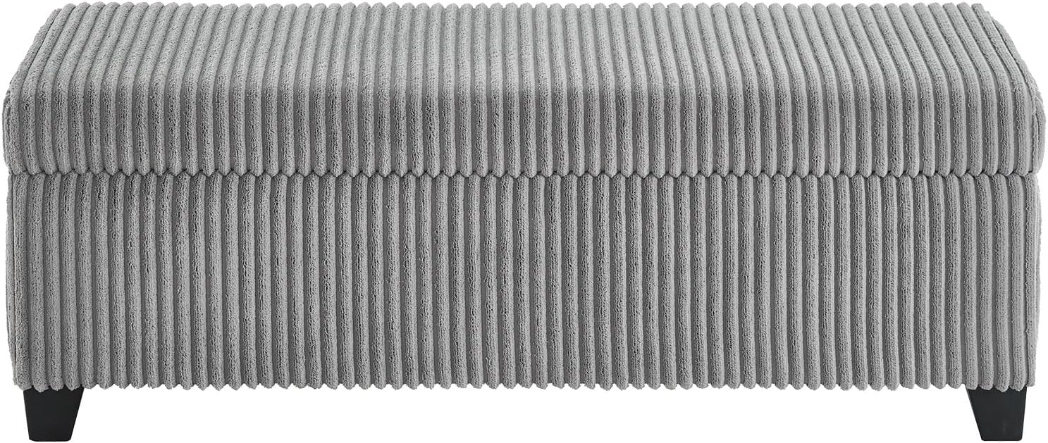 48" Ottoman with Storage, Corduroy Storage Ottoman Bench for Bedroom, End of Bed Bench with Safety Hinge for Living Room, Bedroom, Entryway, Grey