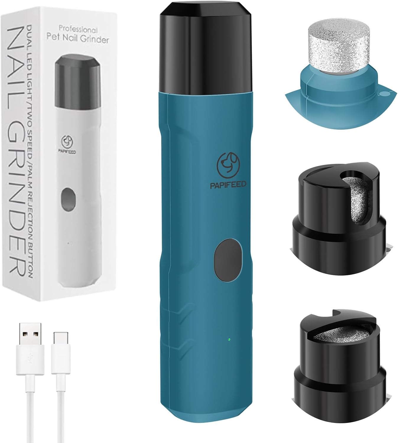 - 🐾【TYPE-C CHARGING, MORE EFFICIENT POLISHING】"The Type-C interface is compatible with mobile phone chargers, so you can charge it whenever you want, and say goodbye to the cumbersome replacement of traditional batteries. Using the PAPIFEED dog nail grinder, you can experience the convenience brought by continuous operation time and ultra-long standby time, providing an uninterrupted beauty process and flexible nail care."