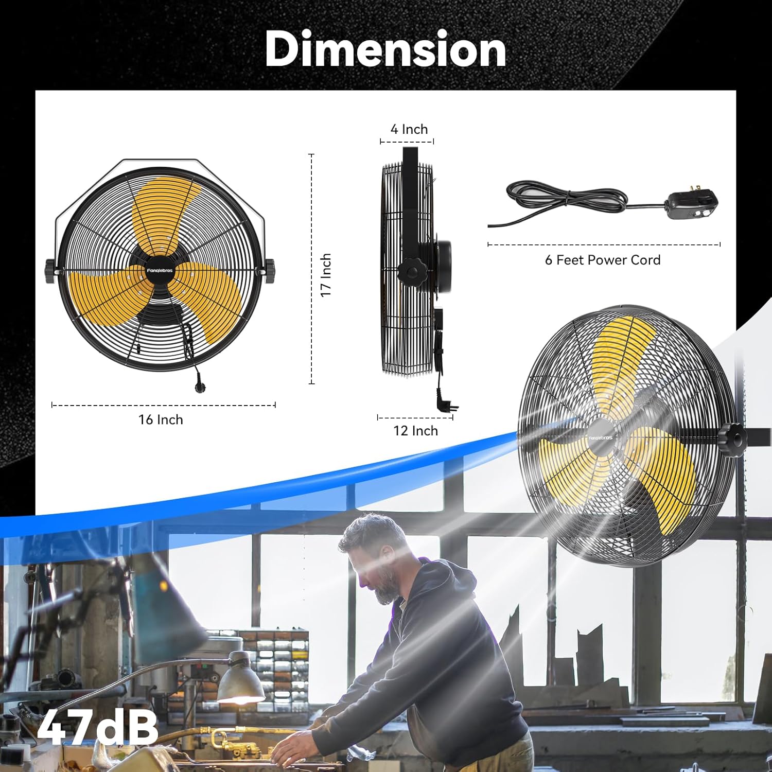 - ššØš°-ššØš¢š¬š ššš¬š¢š š§ - The heavy-duty wall fan operates at a high speed of 2600 CFM with a noise level of only 54dB, which is lower than the industry standard, creating a quieter gathering or working environment