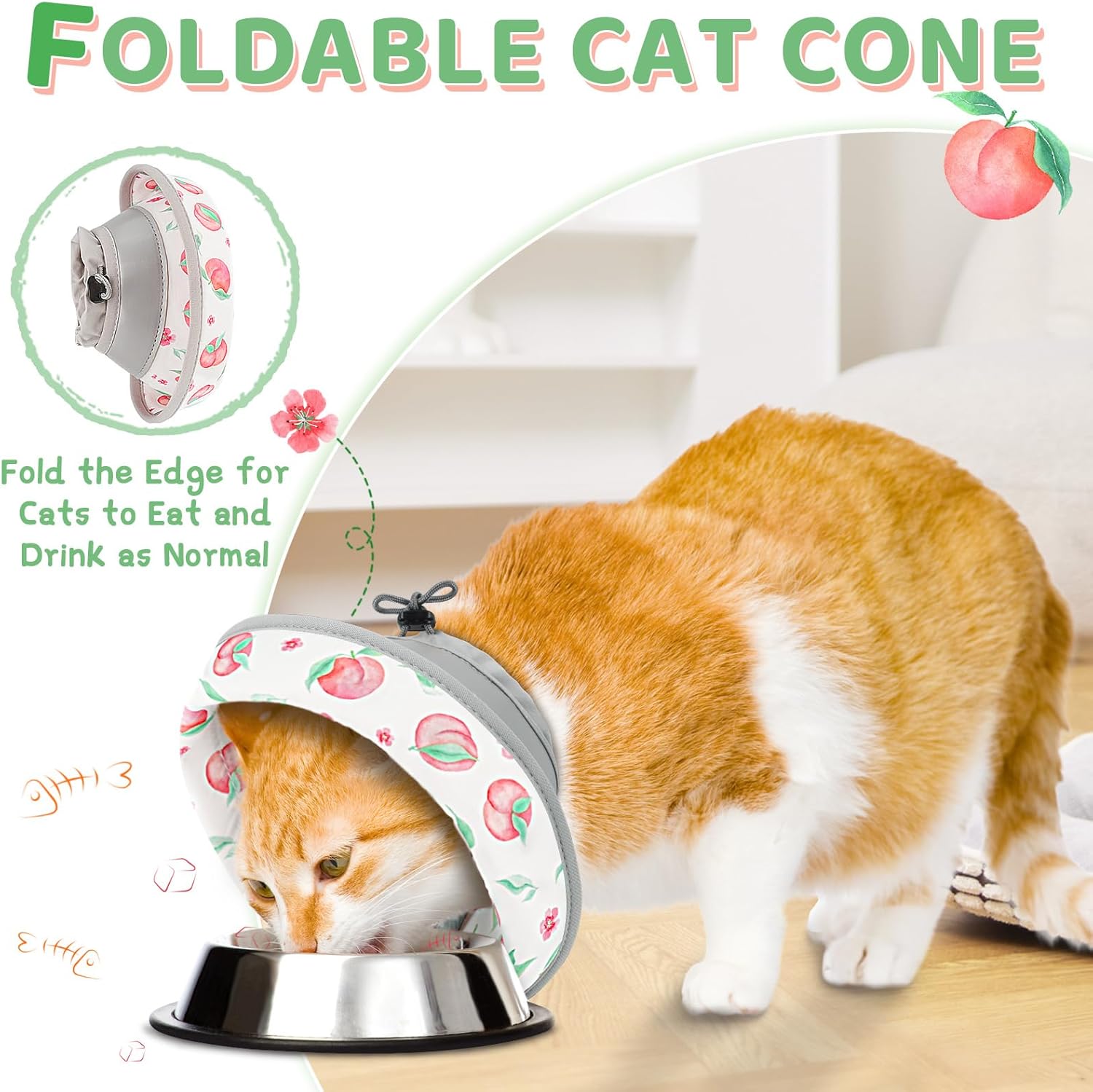 - 【Comfortable Kitten Cone】: This soft cone for cats is made of high-quality EVA material and PU fabric, comfortable and durable, lightweight and soft. It has improved the heavy, stuffy, and uncomfortable problems of the hard plastic Elizabethan collar. Your lovely cat will feel extra comfortable wearing it. And the foldable design allows your cute pet to eat normally, sleep relaxed, and enjoy playing as if it's not wearing anything